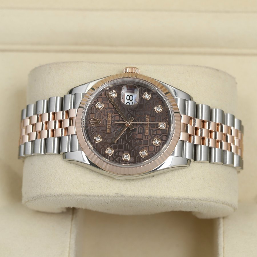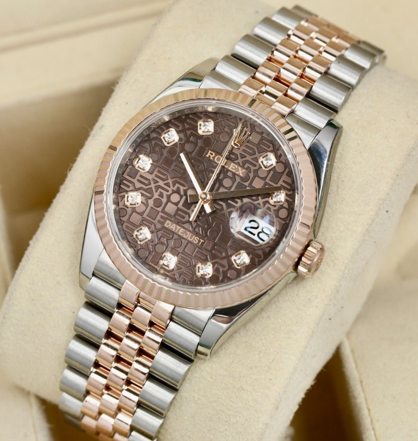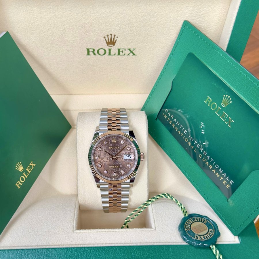 Rolex Datejust 126231 Vi Tính Nâu Diamonds, Demi Vàng hồng 18k, Size 36mm, Like new fullbox date khá cao 2022, Giao lưu 439 triệu ah