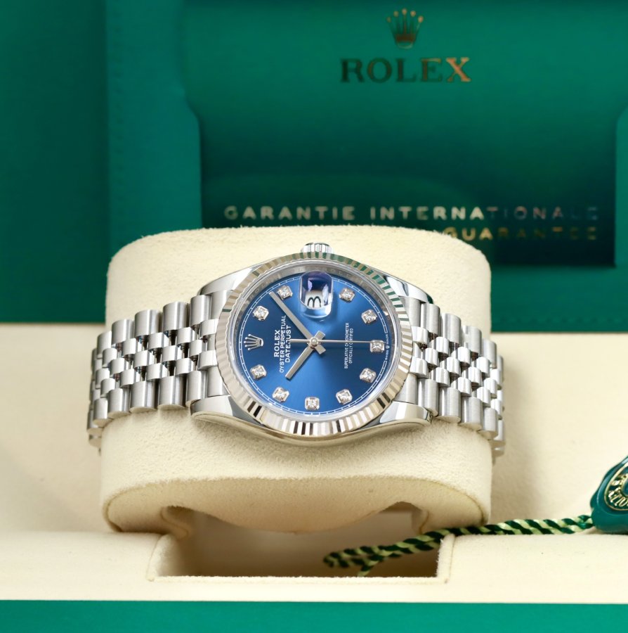 Rolex Datejust 126234 Diamonds Blue, Niềng vàng trắng 18k đúc, Size 36mm, Like new fullbox date cao 2022 (BHTC 2027), Giao lưu 339 triệu ah