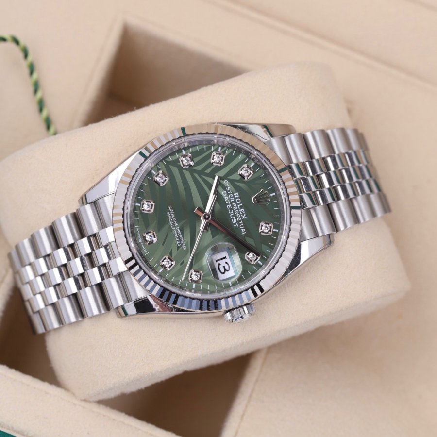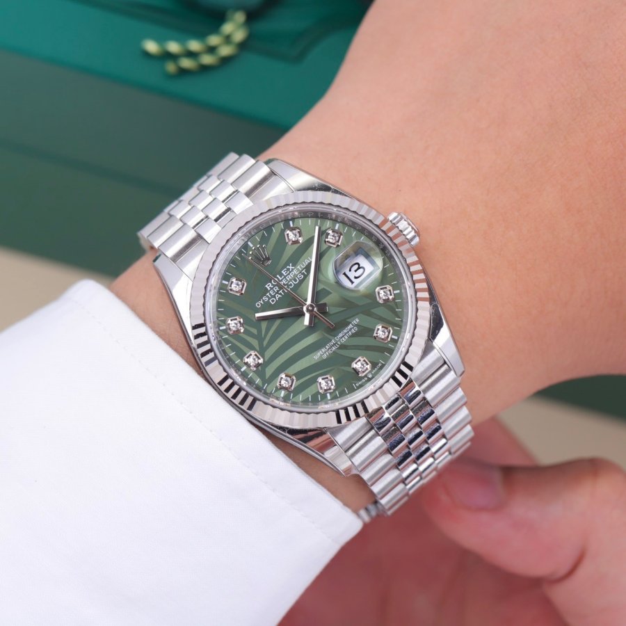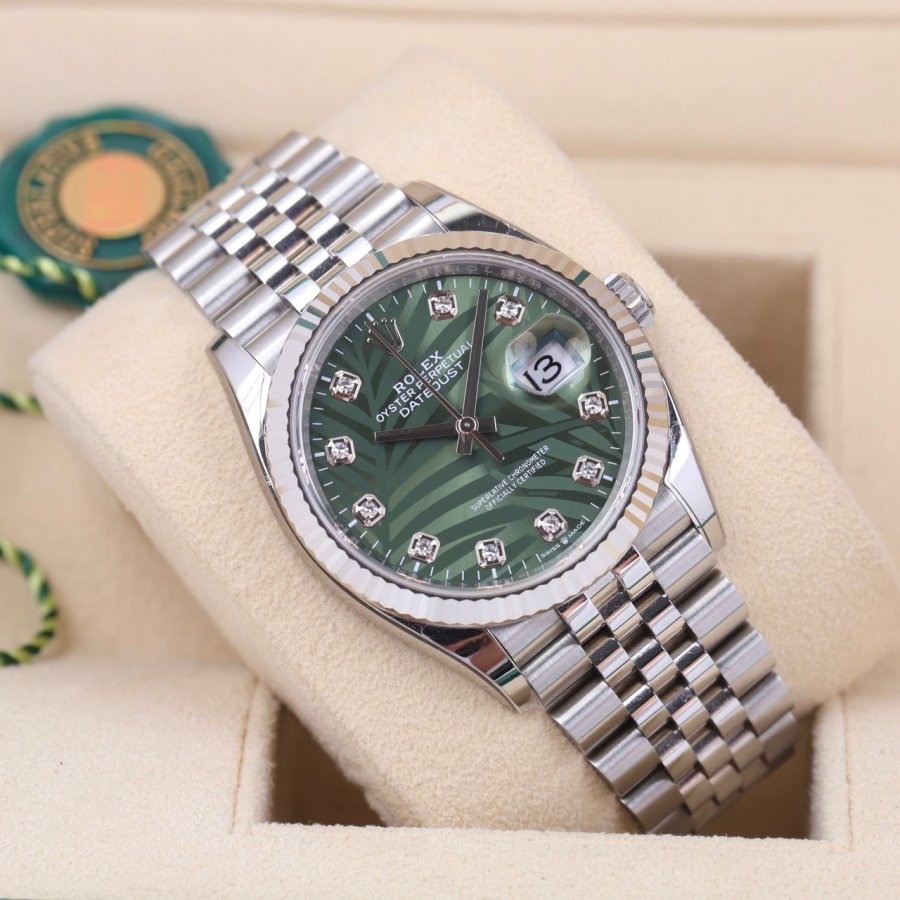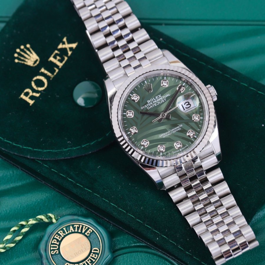 Rolex Datejust 126234 Diamonds Lá Cọ Xanh, Niềng vàng trắng đúc 18k nguyên khối, Size 36mm, Like new fullbox date cao 2022 (Bảo hành CHTC 2027), Giao lưu 358 triệu