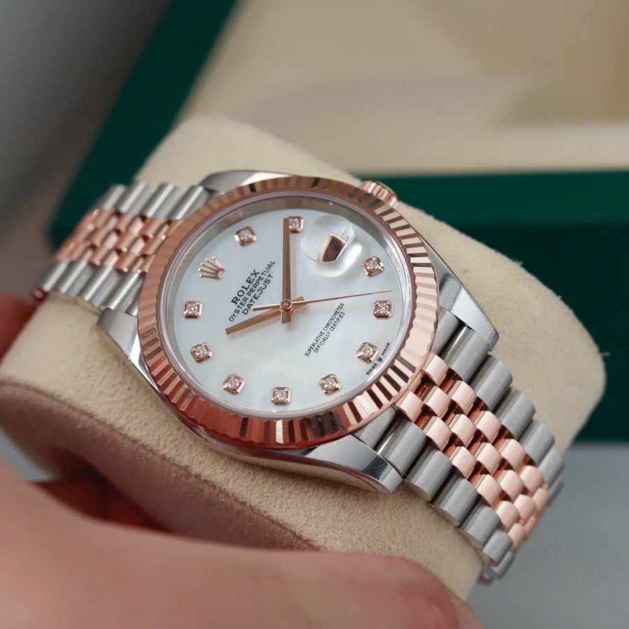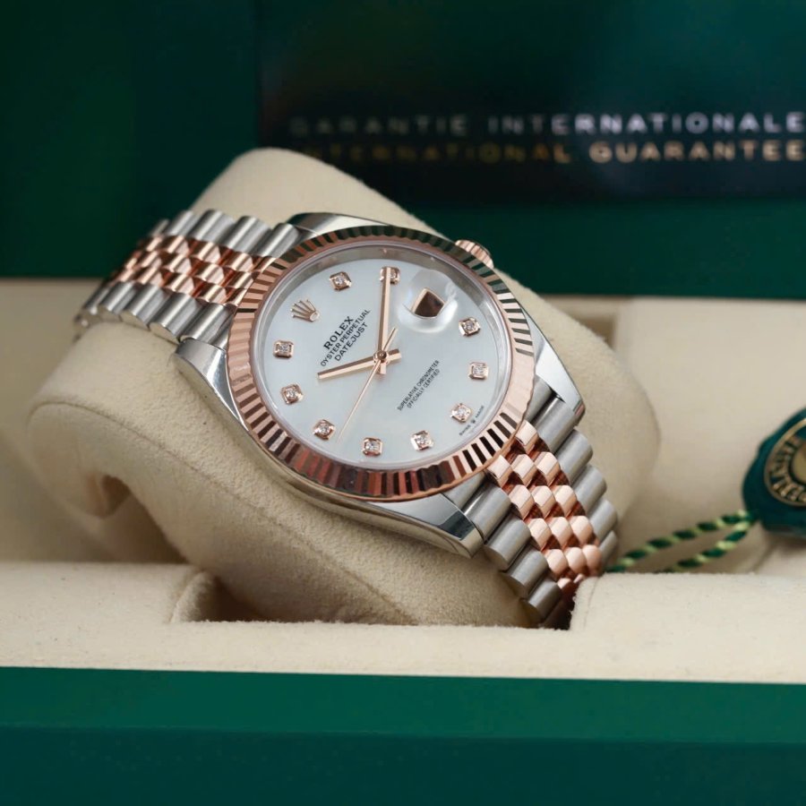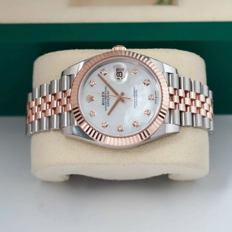 Rolex Datejust 126331 MOP (khảm trai) trắng Diamonds, Demi Vàng hồng đúc 18k, Mark 2, Size 41mm, Like new fullbox date 2021 (BHTC), Giao lưu trên 528 triệu ah