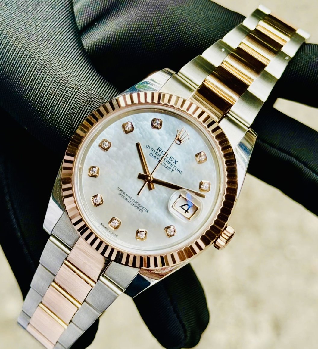 Rolex Datejust 126331 MOP trắng Diamonds Rose Gold 18k, Size 41mm, Lướt đẹp có box + thẻ BHCH e, Giao lưu 386 triệu (Retail: 515 triệu) ah
