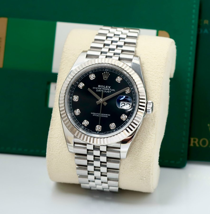 Rolex Datejust 126334 Black Diamonds, Niềng vàng trắng đúc 18k, Size 41mm, Like new fullboxd date 2019, Giao lưu 379 triệu (Retail: 468 triệu) ah