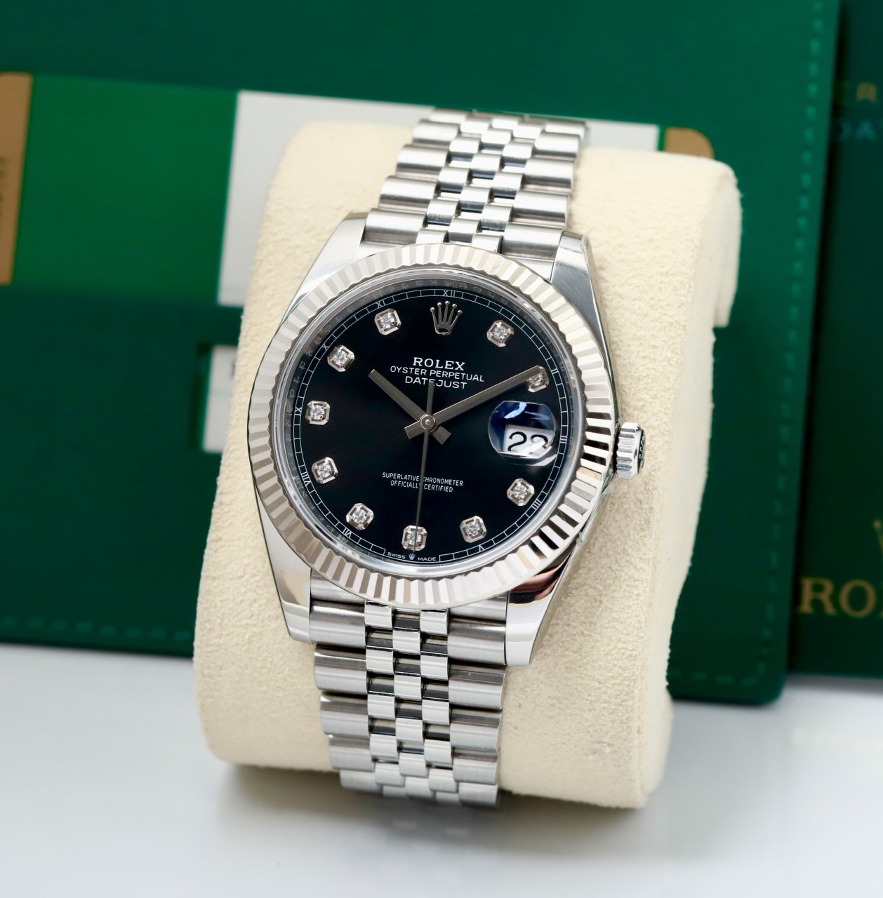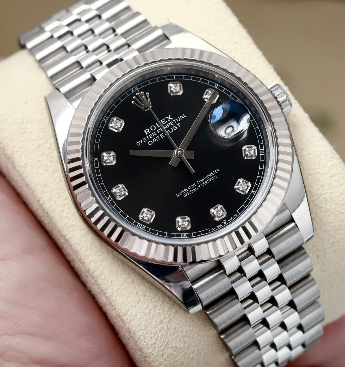 Rolex Datejust 126334 Diamonds Black, Niềng vàng trắng đúc 18k, Mark 2, Size 41mm, Like new fullbox, Giao lưu 368 triệu ah