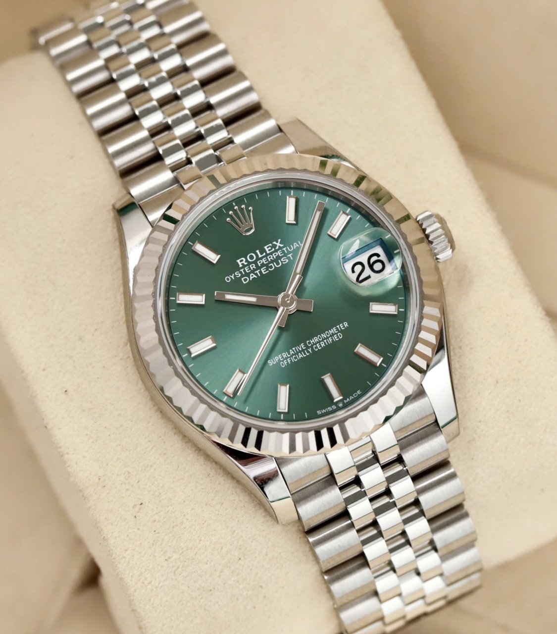 Rolex Datejust Lady 278274 xanh Mint Index Luminous dây Jubilee, Size 31mm, Like new fullbox date cao 2022 (Bảo hành CHTC 2027), Giao lưu 315 triệu ah