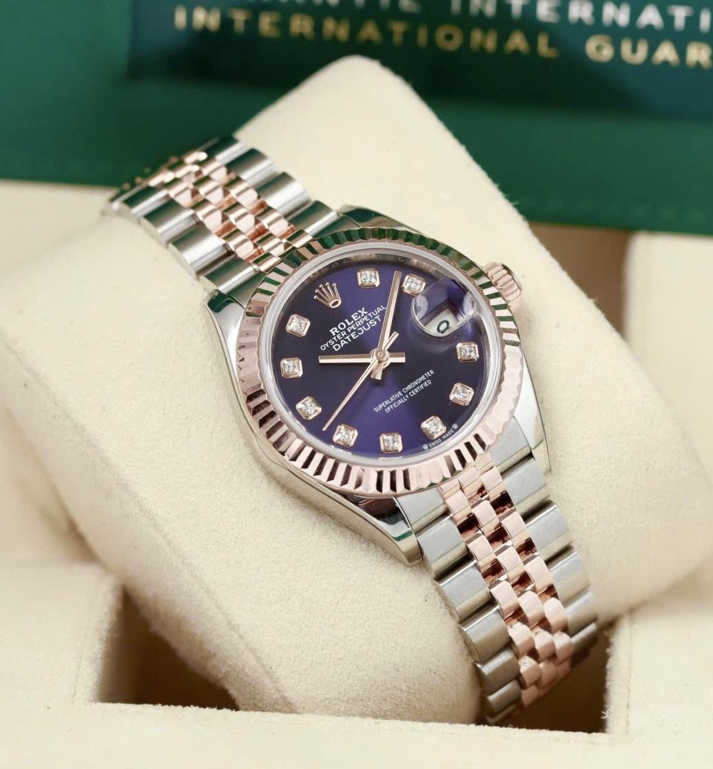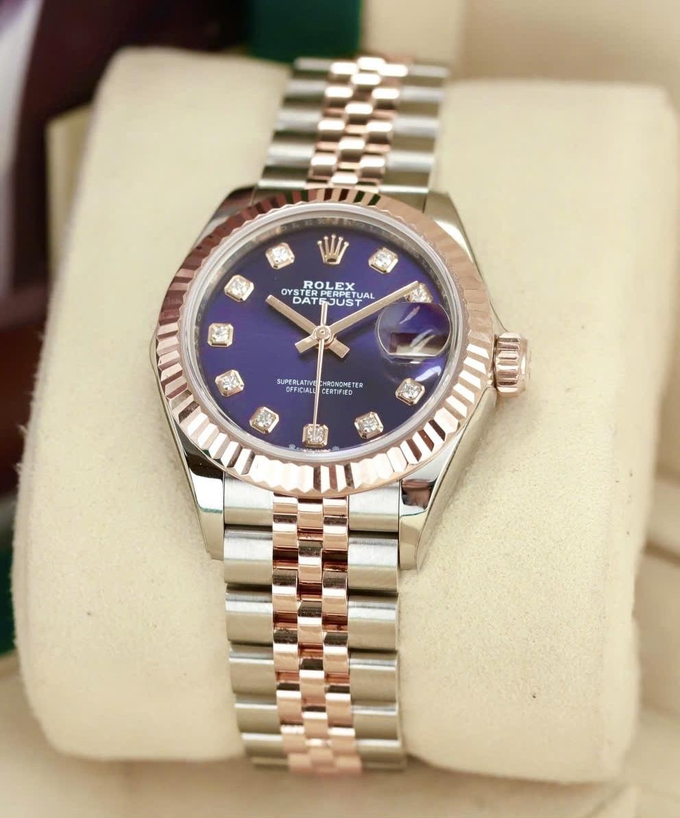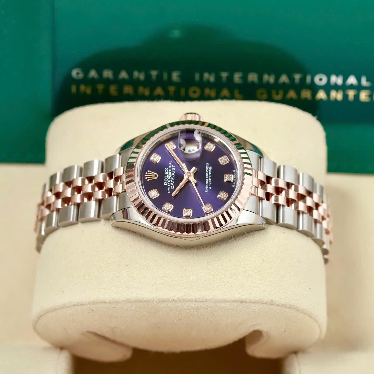 Rolex Datejust Lady 279171_ Tím Diamonds Rose Gold 18k, Size 28mm, Like new fullbox date 2021 (Bảo hành chính hãng toàn cầu 2026), Giao lưu 348 triệu (Retail: 468 triệu) ah