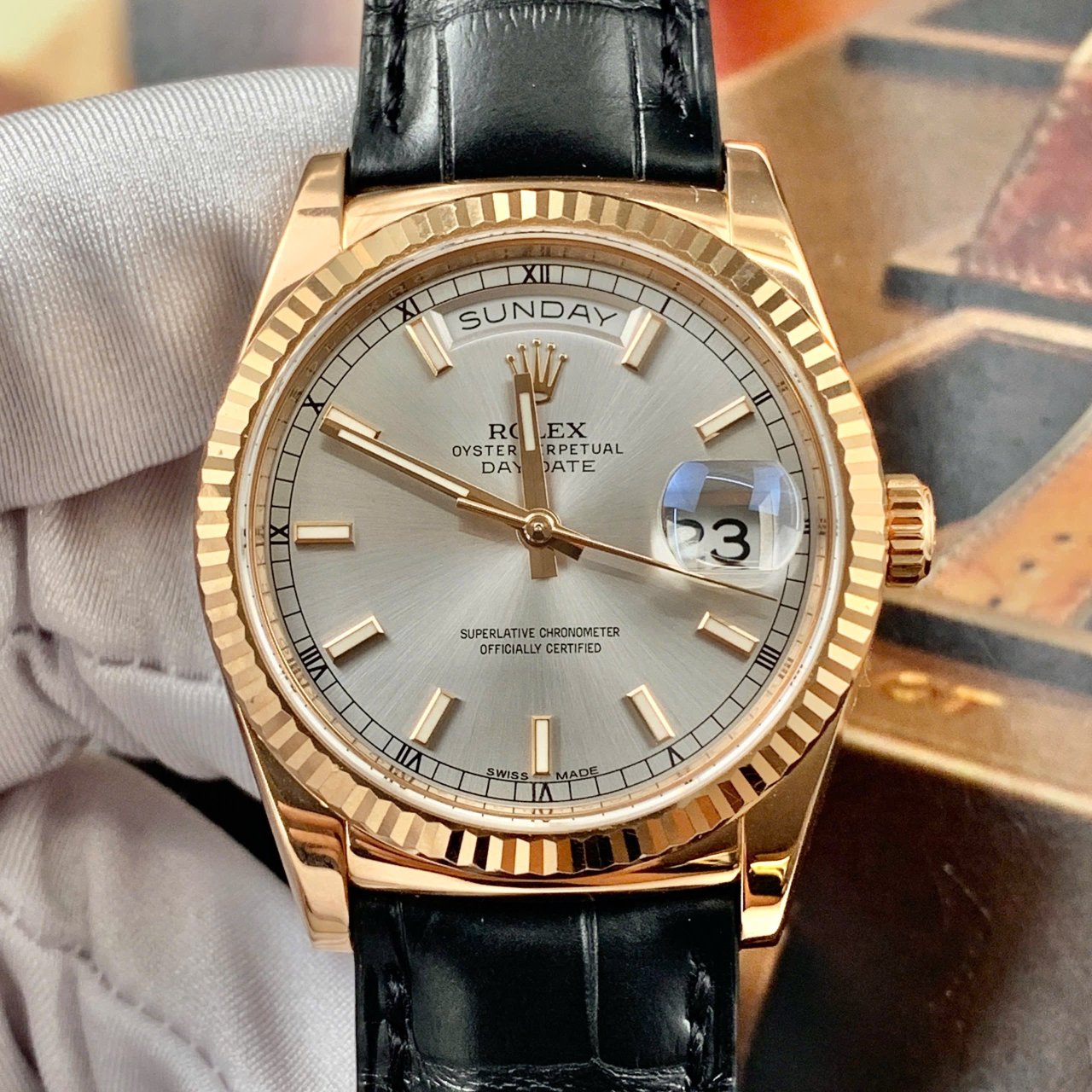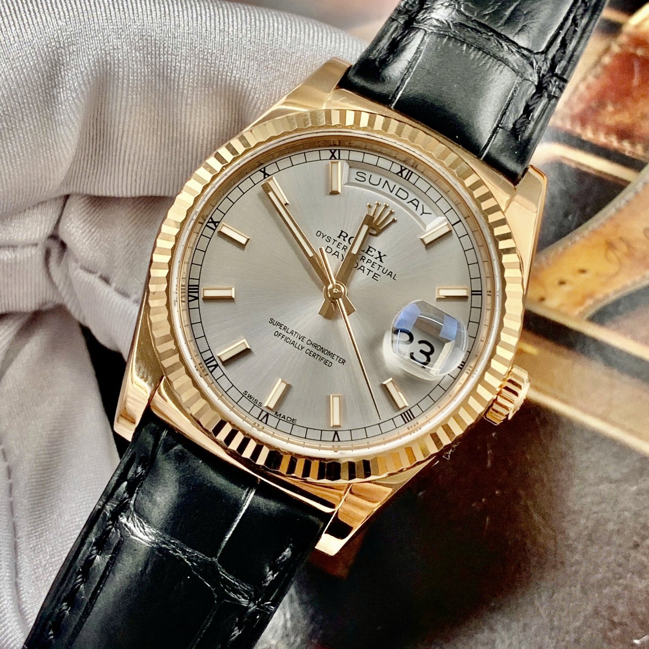 Rolex Day date 118135 Silver Index dạ quang, Vàng hồng đúc 18k nguyên khối, khoá đôi vàng hồng đúc 18k, Size 36mm, Like new fullbox date khá, Giao lưu 486 triệu (Retail: 1 tỷ 1) ah