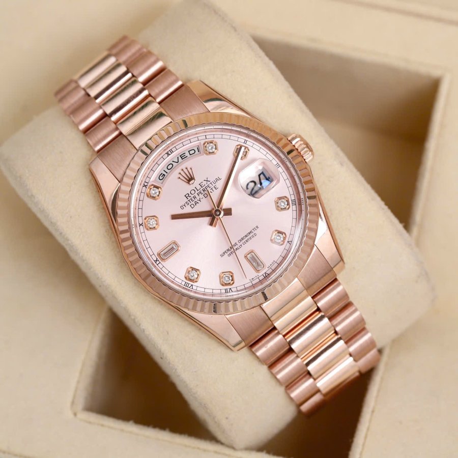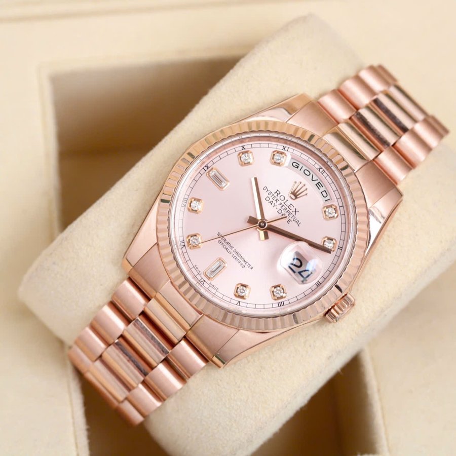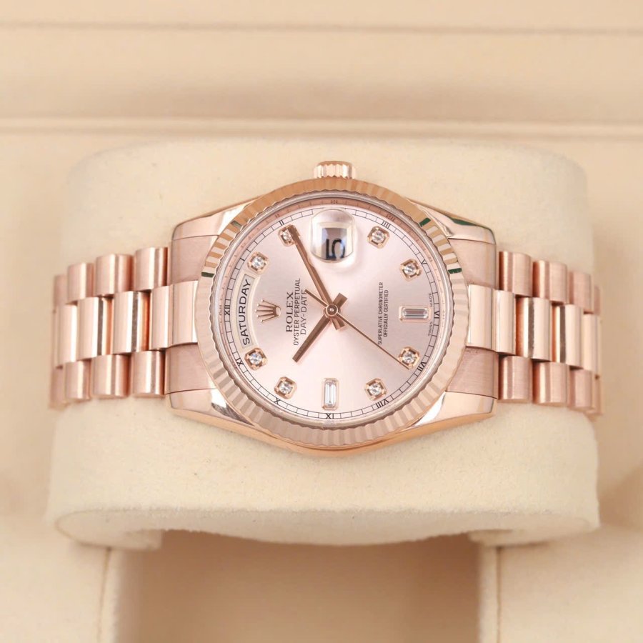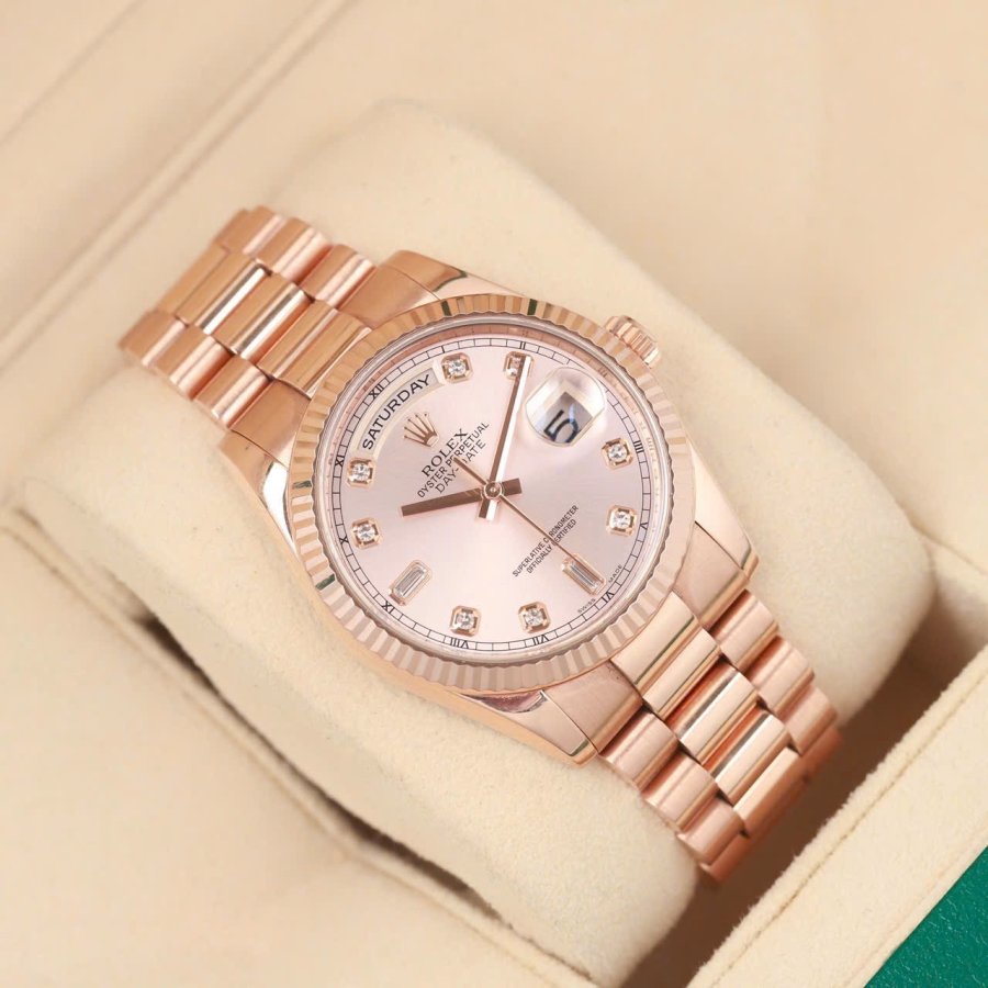 Rolex Day- Date 118235 Tia Hồng Diamonds Baguette, Vàng hồng đúc 18k nguyên khối, Size 36mm, Like new fullbox date 2009, Giao lưu 739 triệu (Retail:~ 1 tỷ 3) ah