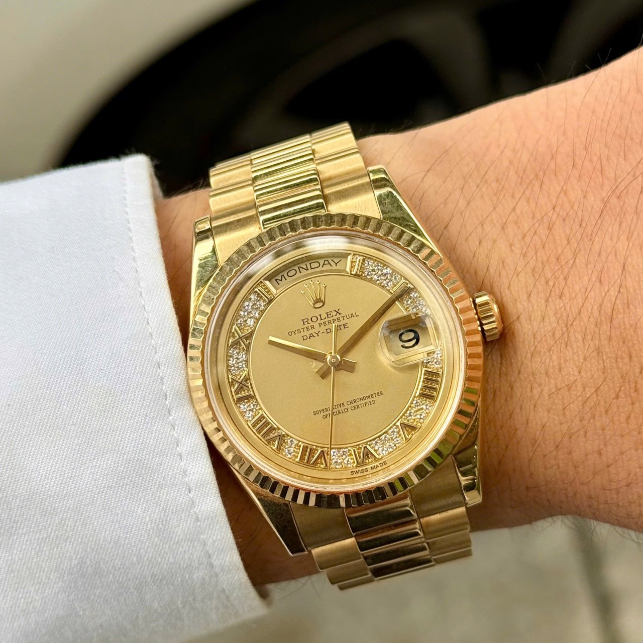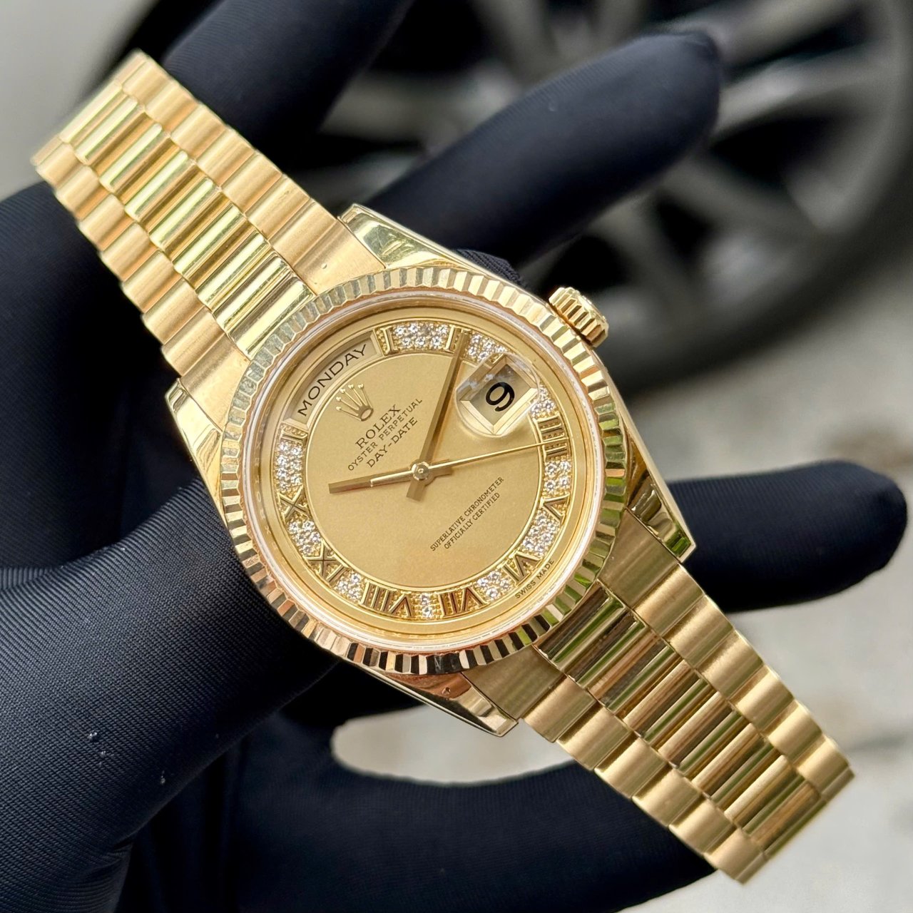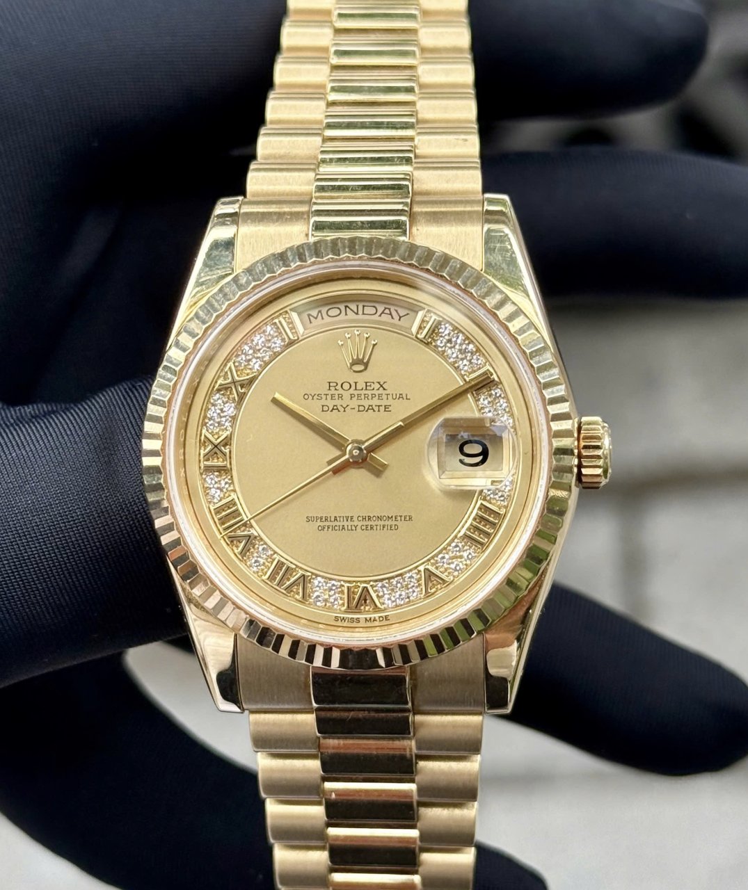 Rolex Day date 118238 Diamonds Champagne Solid Gold 18k, Size 36mm, Lướt đẹp Only Watch + thẻ BHCH, Giao lưu 668 triệu (Retail: ~ 1 tỷ 250) ah