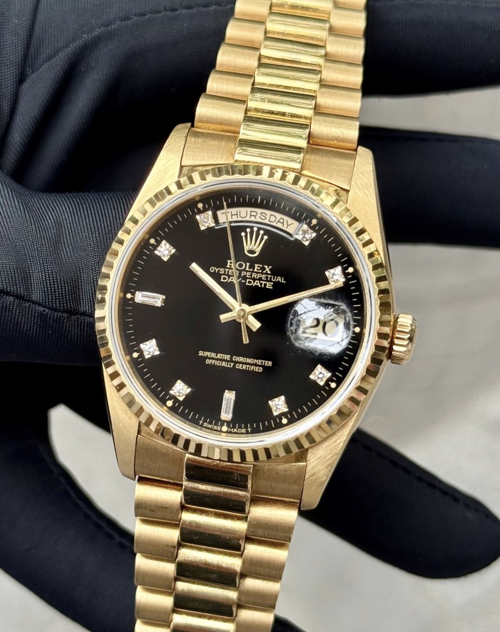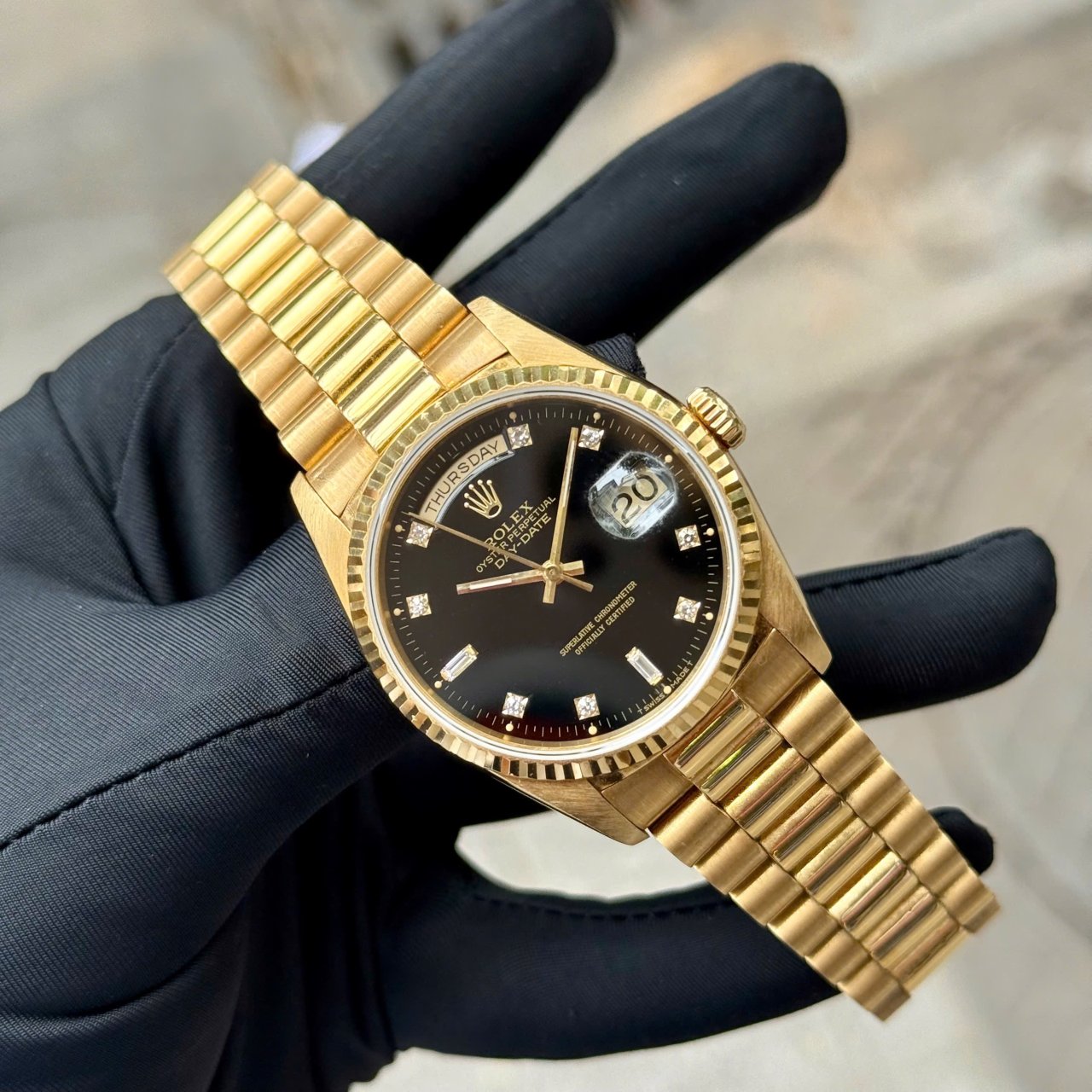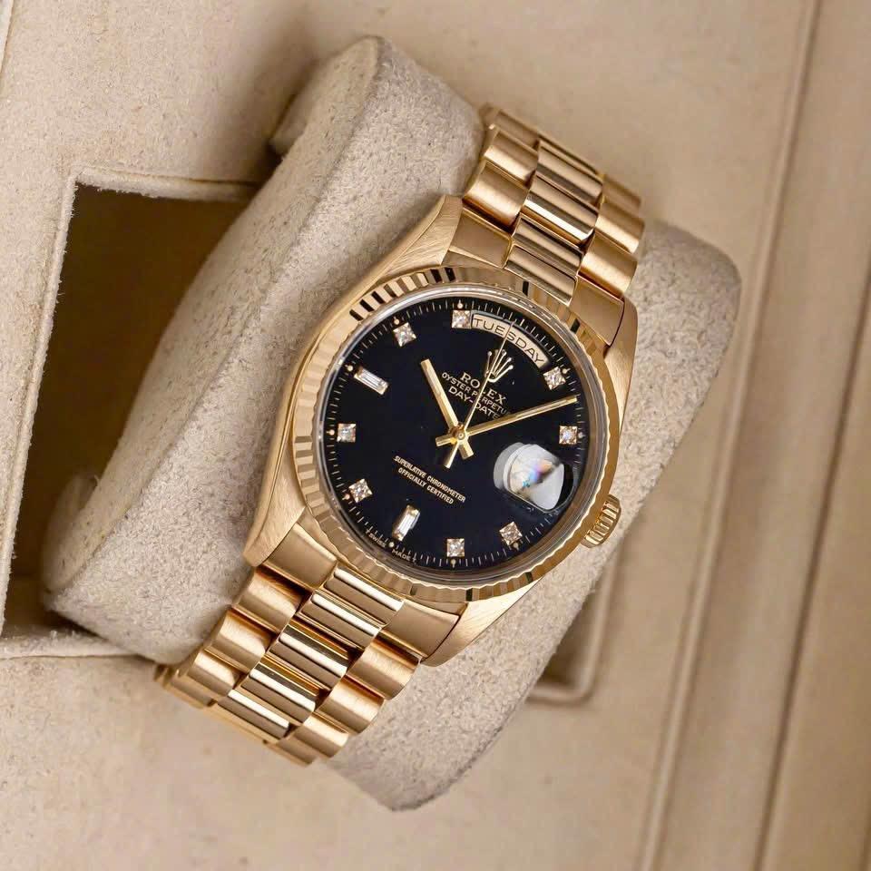 Rolex Day date Black 18238, Vàng đúc 18k nguyên khối, Size 36mm, Máy 6 số 3155, Qua sd còn đẹp Only, Giao lưu 479 triệu ah