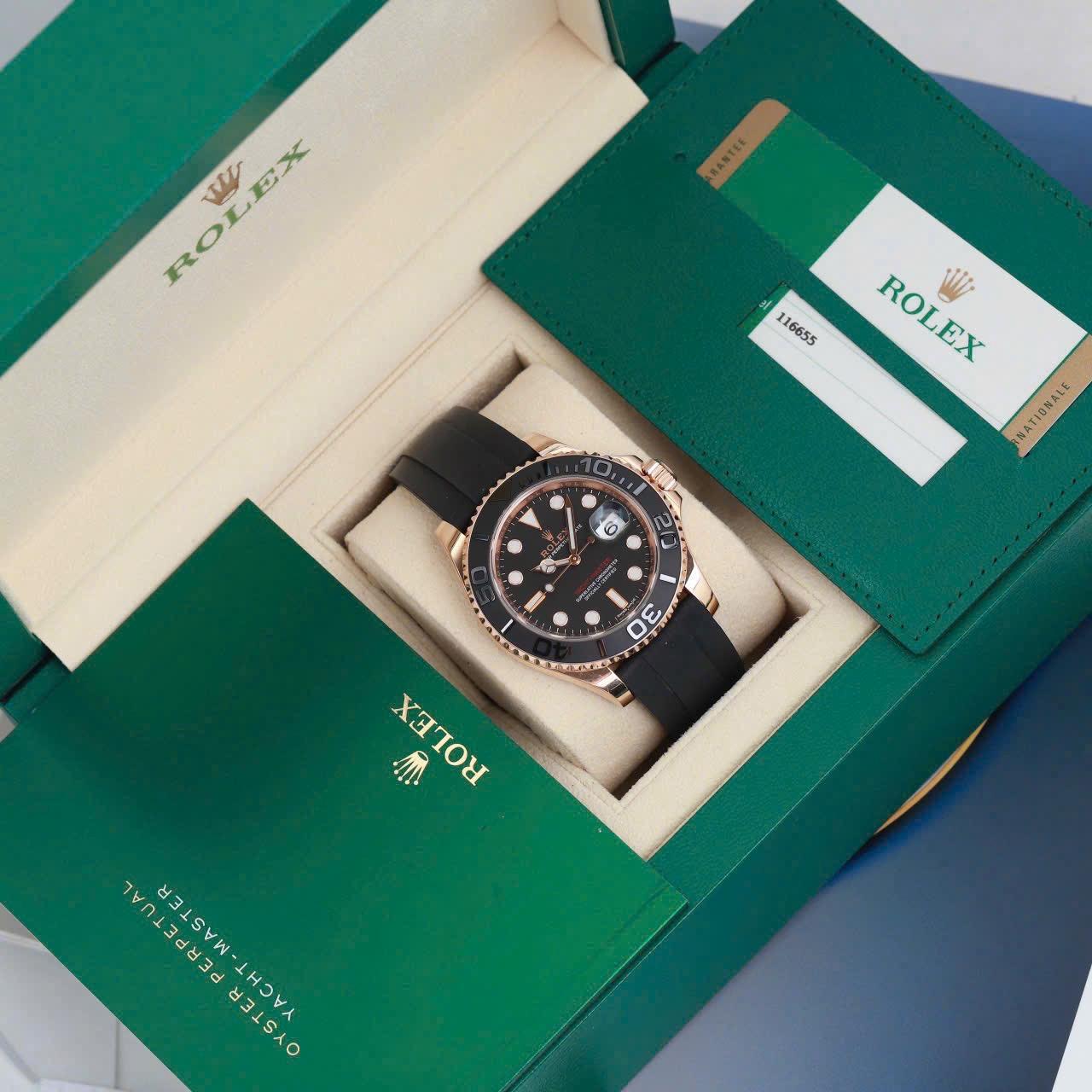 Rolex Yacht Master 116655 Black Caramic, Vàng hồng đúc 18k Nguyên khối, Size 40mm, Like new fullbox date khá cao, Giao lưu 597 triệu (Retail: ~1 tỷ)