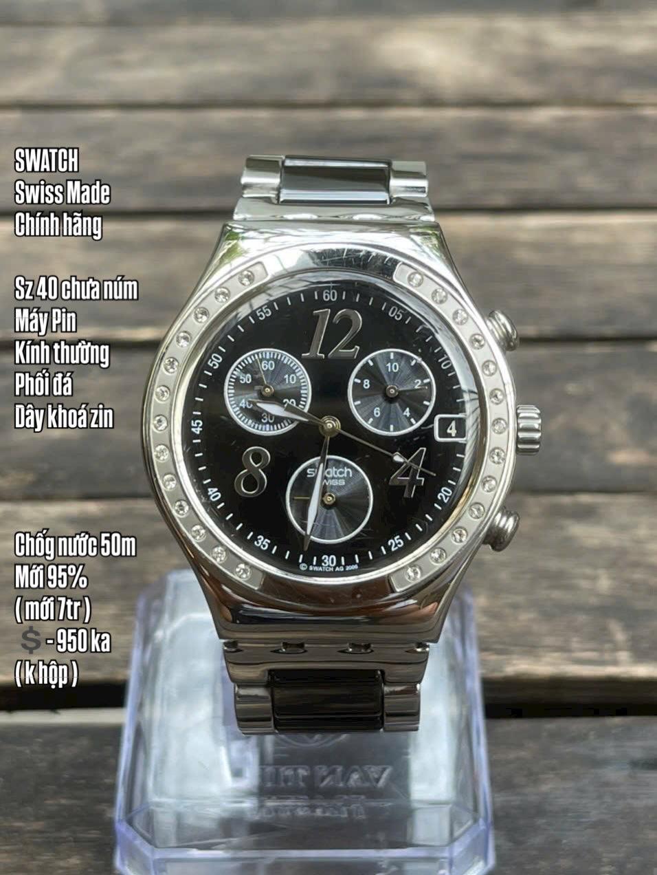 S W A T C H / Swiss Made Chính hãng Sz 40 chưa númMáy PinKính thường Phối đáDây khoá zin Chốg nước 50mMới 95% ( mới 7tr )💲- 950 ka ( k hộp )