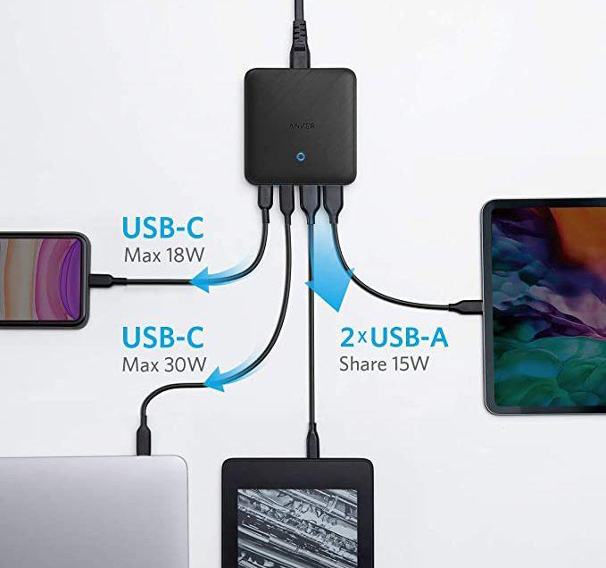 Thiết bị sạc chính hqngx anket cho laptop và thiết bị điẹn tử cực vip . 1 công type c. Và 3 cổng usb