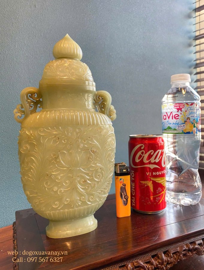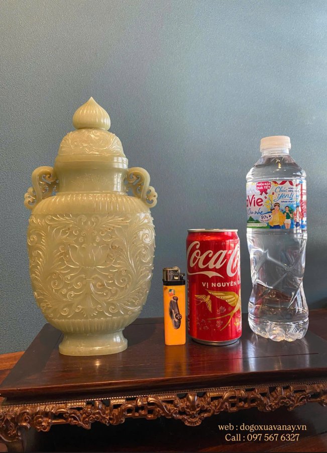 Khi đặt cạnh lon nước hay chai lavie, chiếc bình Ngọc mới thực sự lộ diện vẻ bề thế và uy nghiêm của mình. Với chiều cao vượt trội và thân hình đầy đặn, đây không chỉ là một món đồ trang trí, mà còn là một điểm nhấn phong thủy làm bừng sáng cả không gian trong nhà.