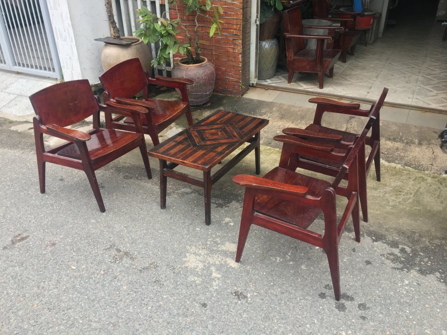 Bán bộ salon cóc xưa 4 ghế lưng , mặt gõ đỏ nguyên tấm dày k 2,7 cm. Giá 4,7 triệu đồng. đt: 0917 158 553
