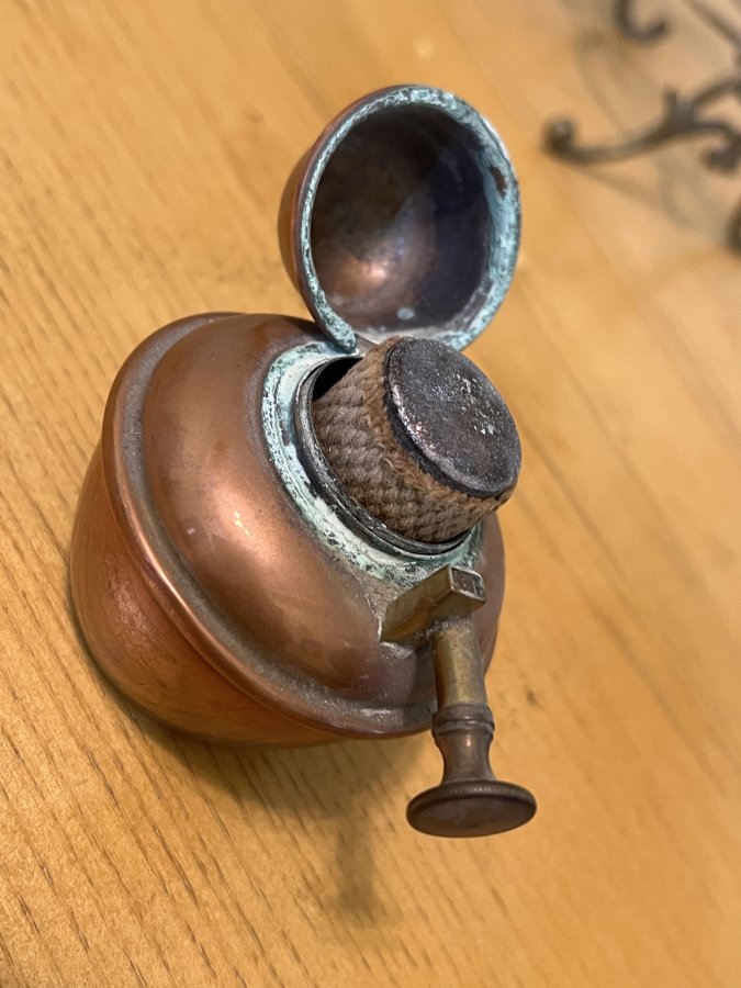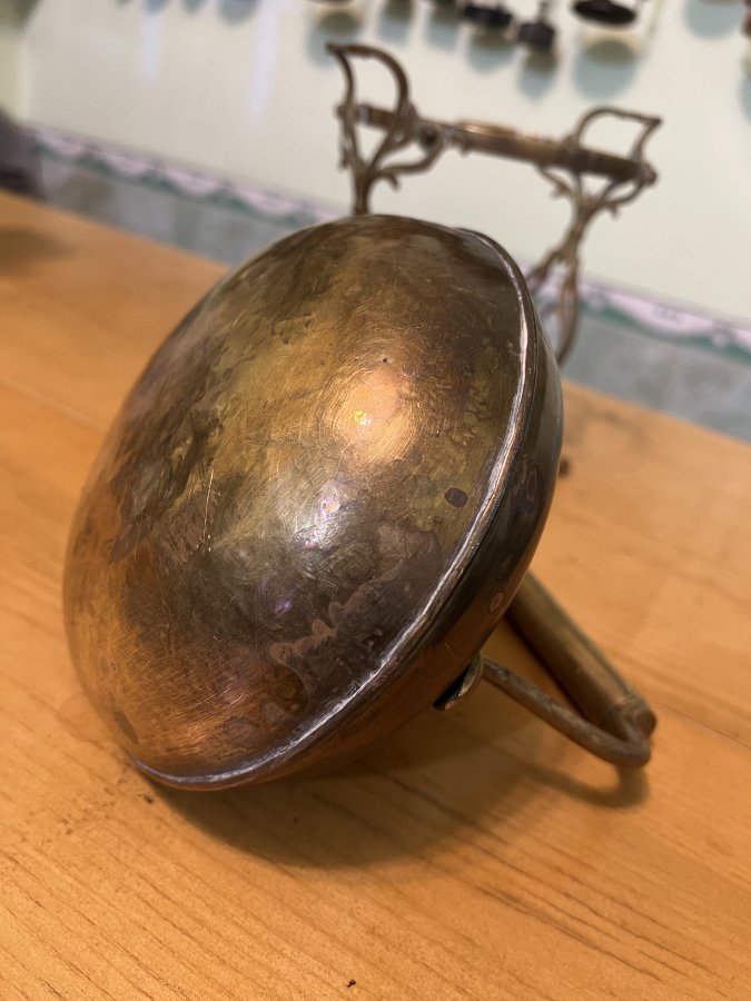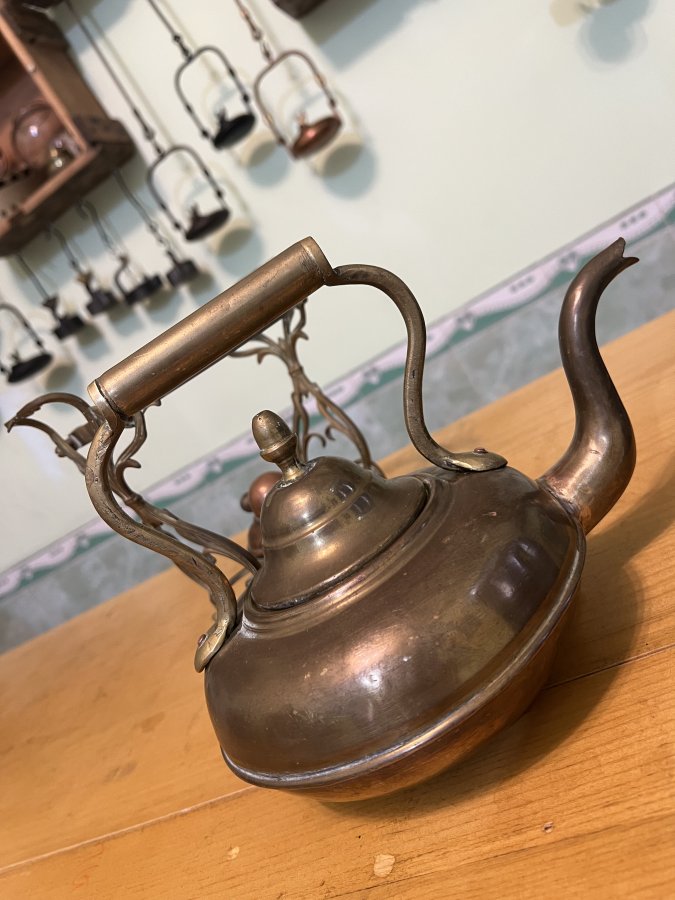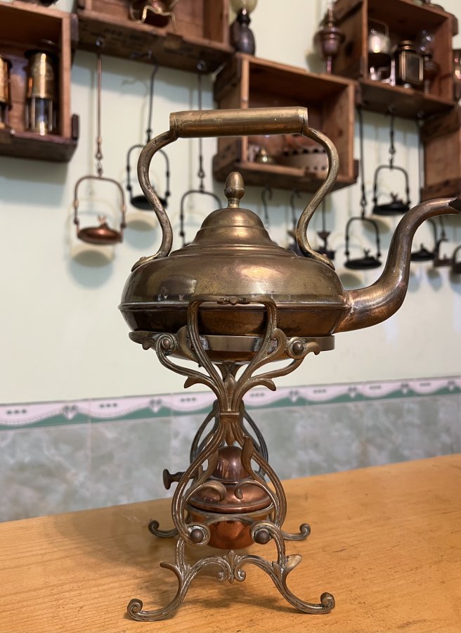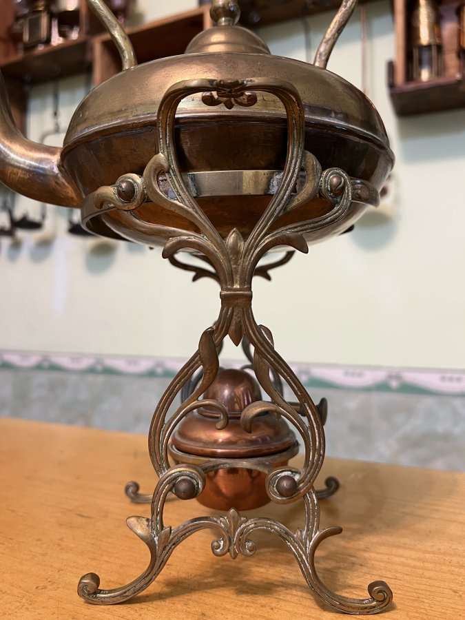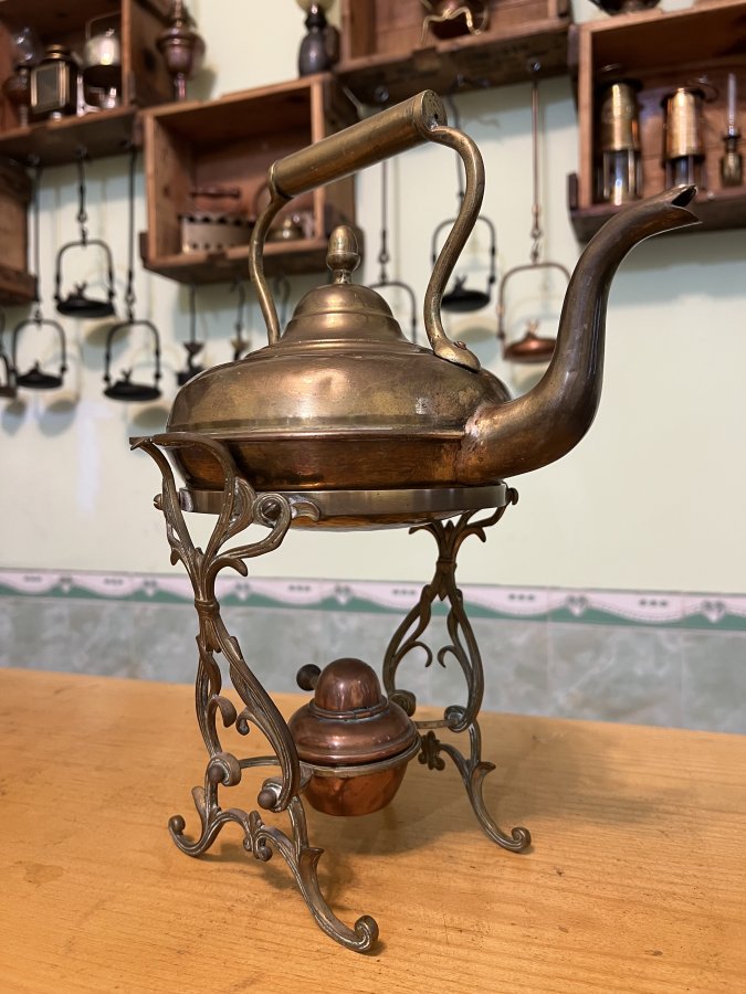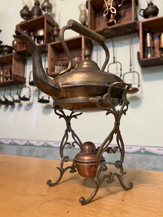 Em giao lưu bộ Ấm Samovar Pháp cổ, sâu tuổi = Đồng thau. Gò thủ công, mộc mạc mà rất kute