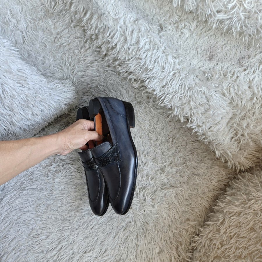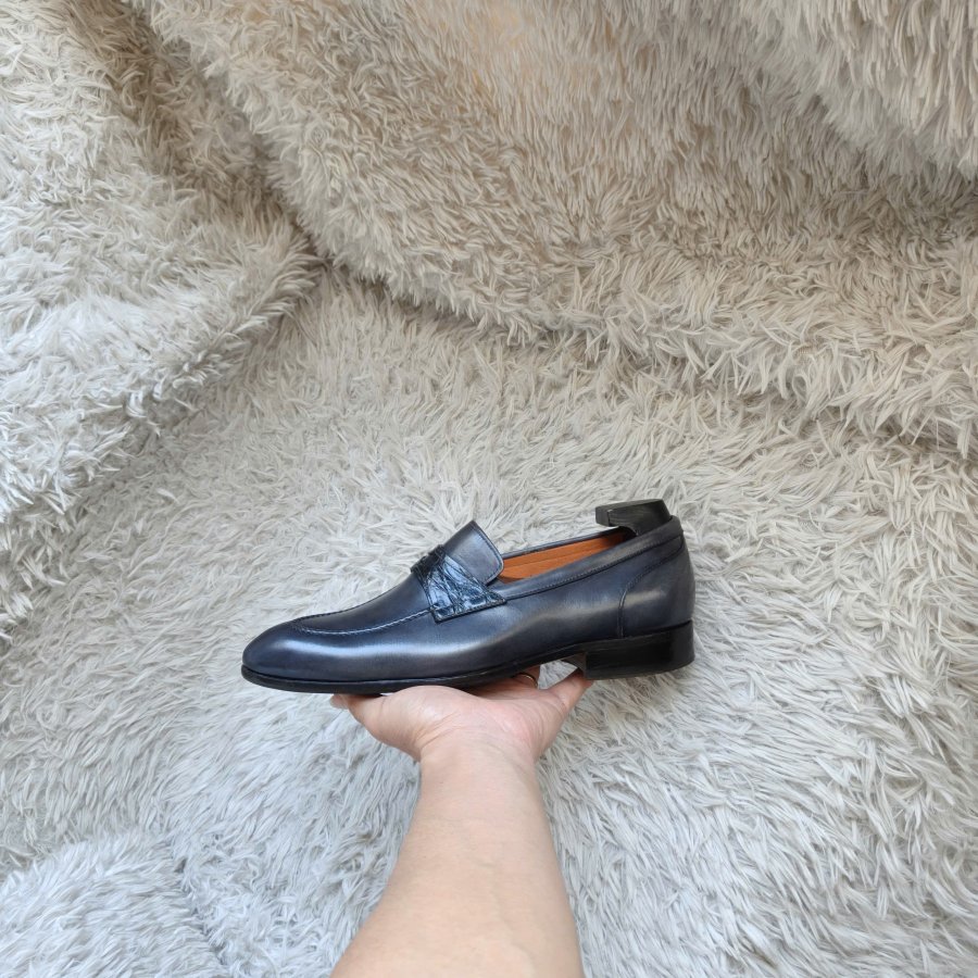 Anh em tinh mắt chỉ cần nhìn qua cái thiết kế tổng thể, cái phần strap bằng da cá sấu lên màu patina, cái phần mũi giày sử dụng kỹ thuật reverse stitch, phần đế có fiddle back... Là biết giày ở phân khúc cao phỏng ạ. Nhất là nó lại còn đến từ một tên tuổi cỡ bự :