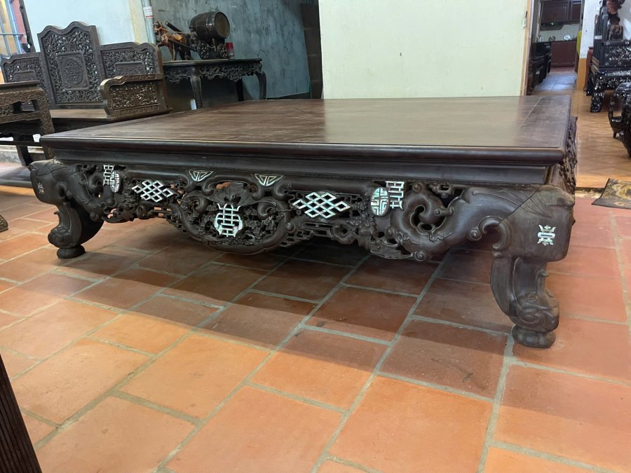 Sập gụ ngũ phúc trám khảm ốc kt 2m-1m60 mặt 2 lá