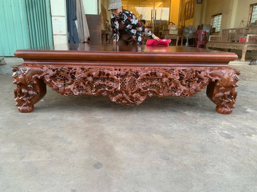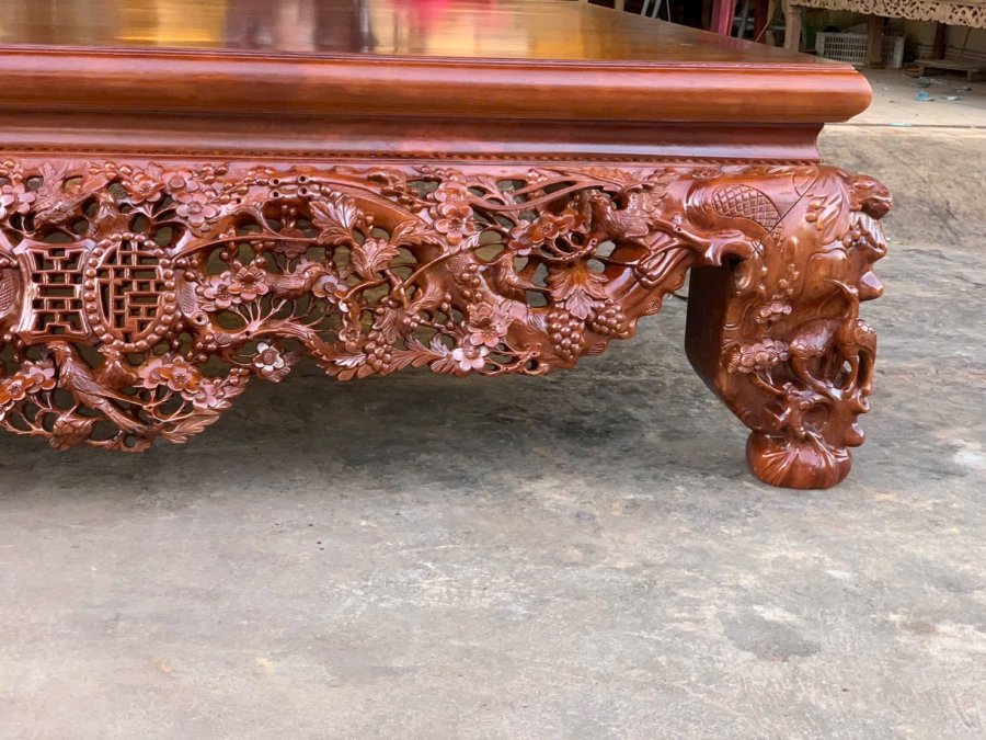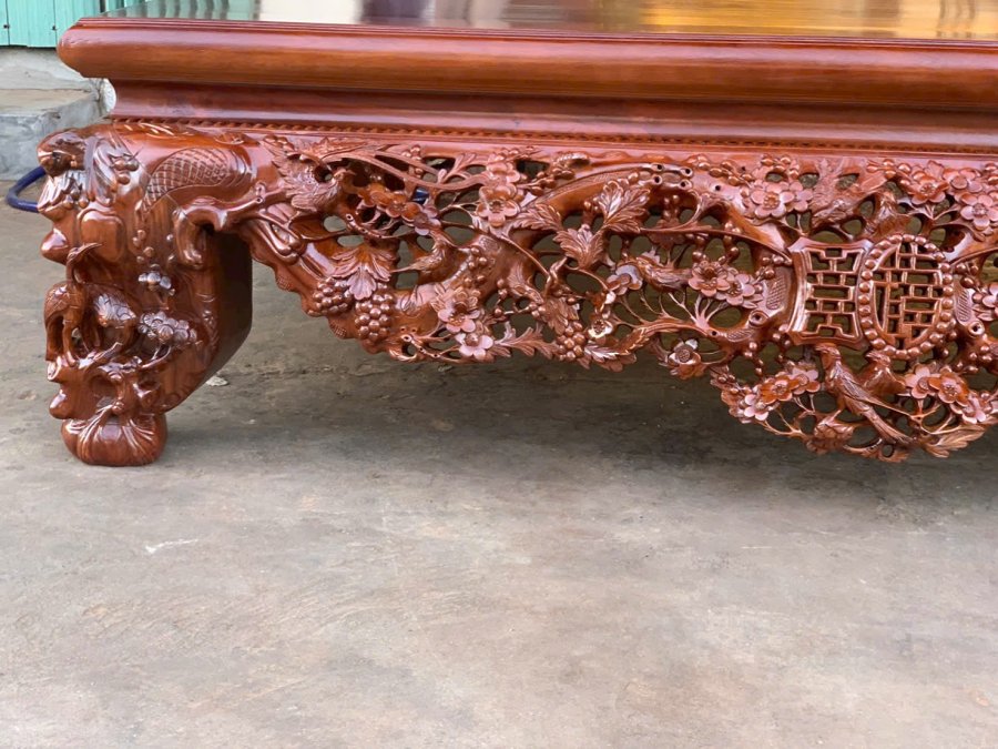 Sập mai điểu gỗ gụ vai 10cm mặt 2 lá chân 24