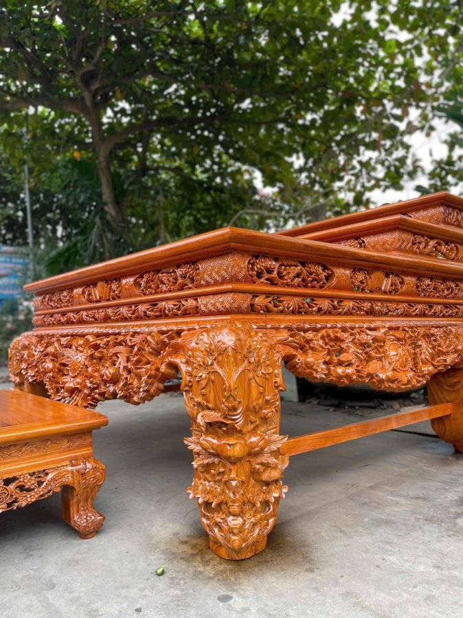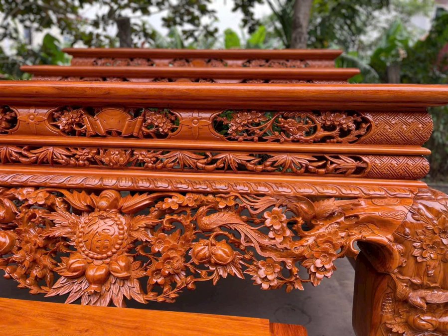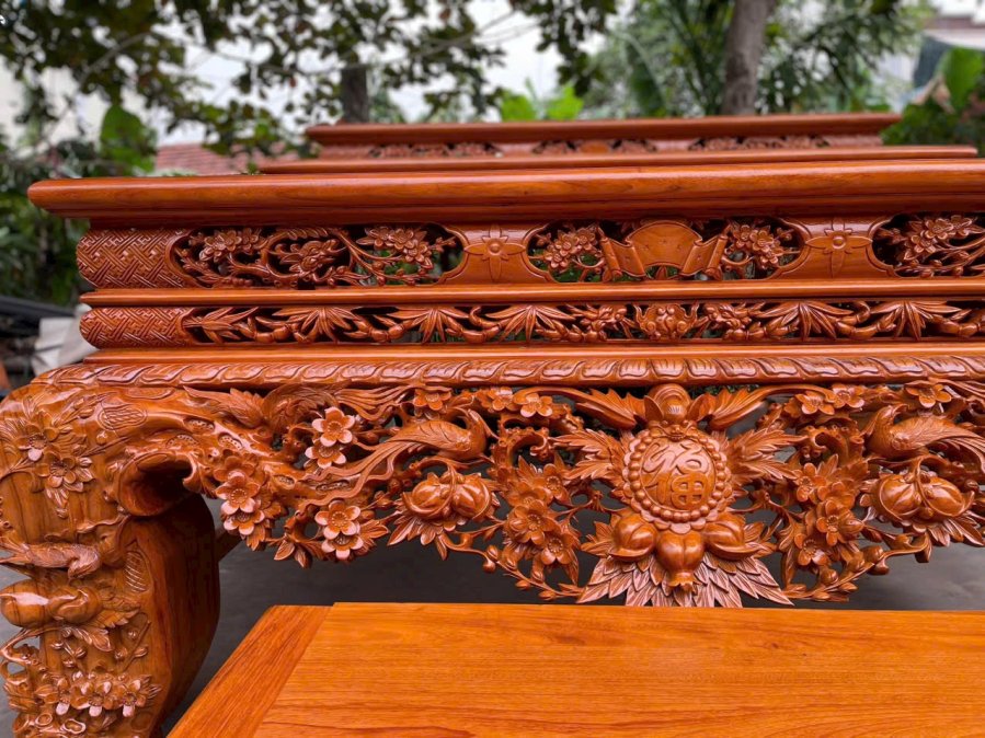 Sập thờ hoa mai gỗ gụ chân 24 gỗ gụ kt 217-127-107