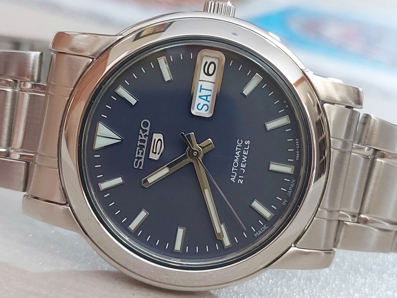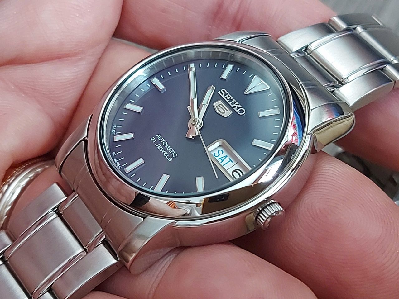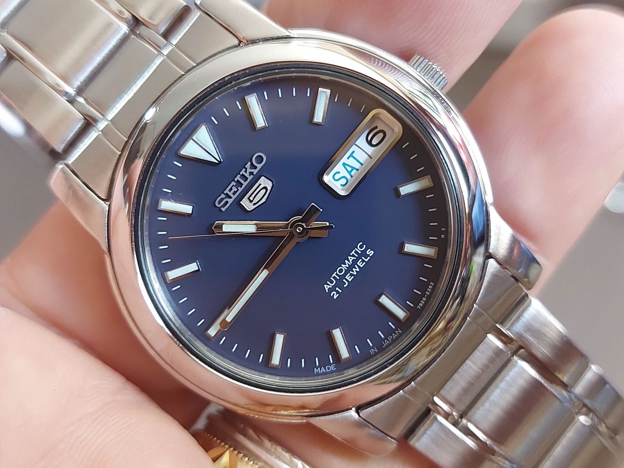 Seiko auto japan sx Độ mới >97% Máy auto 2'lịch Size 34,5 ko tính núm Mặt xanh dạ quang sáng Đho chạy chuẩn Dây đủ <75kg Thép toàn thân, kính cứng Giá 1.650k