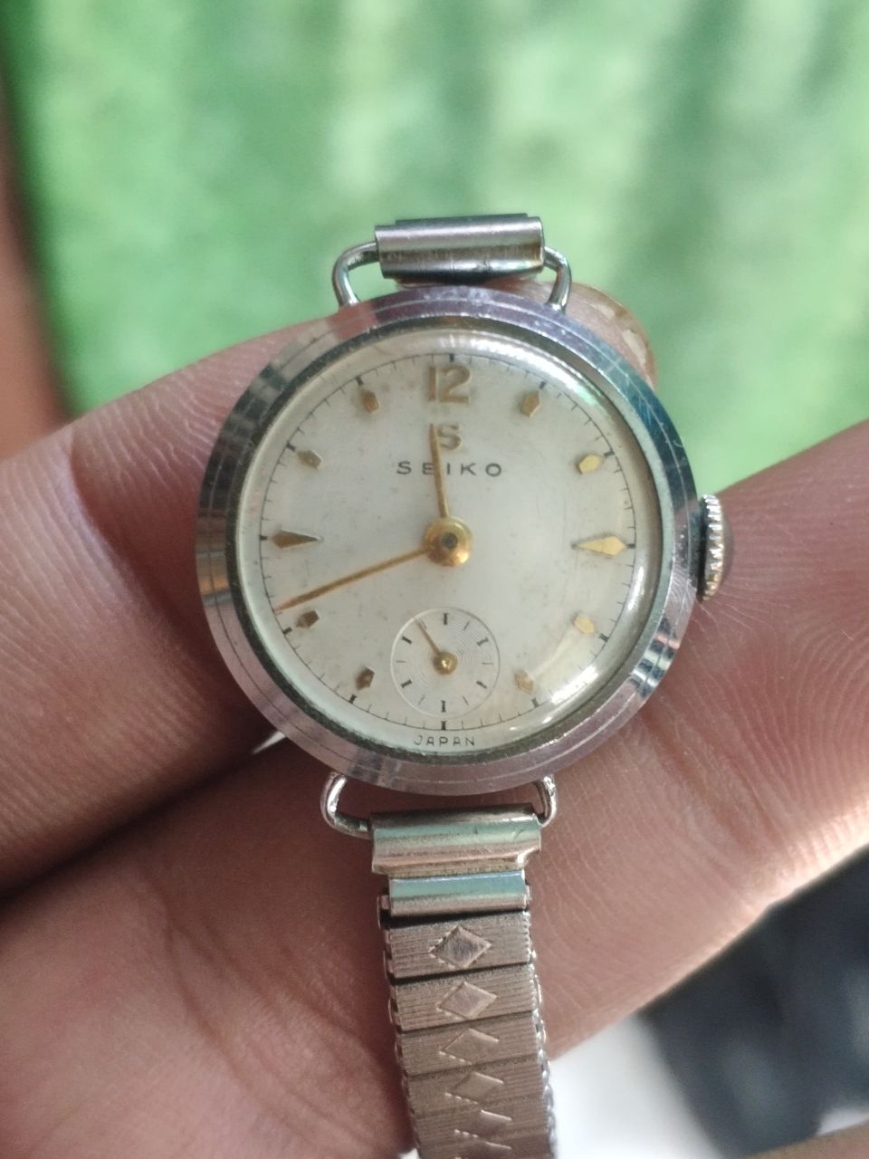 seiko nữ vintage cót tay chuẩn cổ. kim rốn hoạt động hoàn hảo. size 22. chưa tính núm. bộ máy đẹp nhìn chảy nước luôn nhé ae. dây chum.