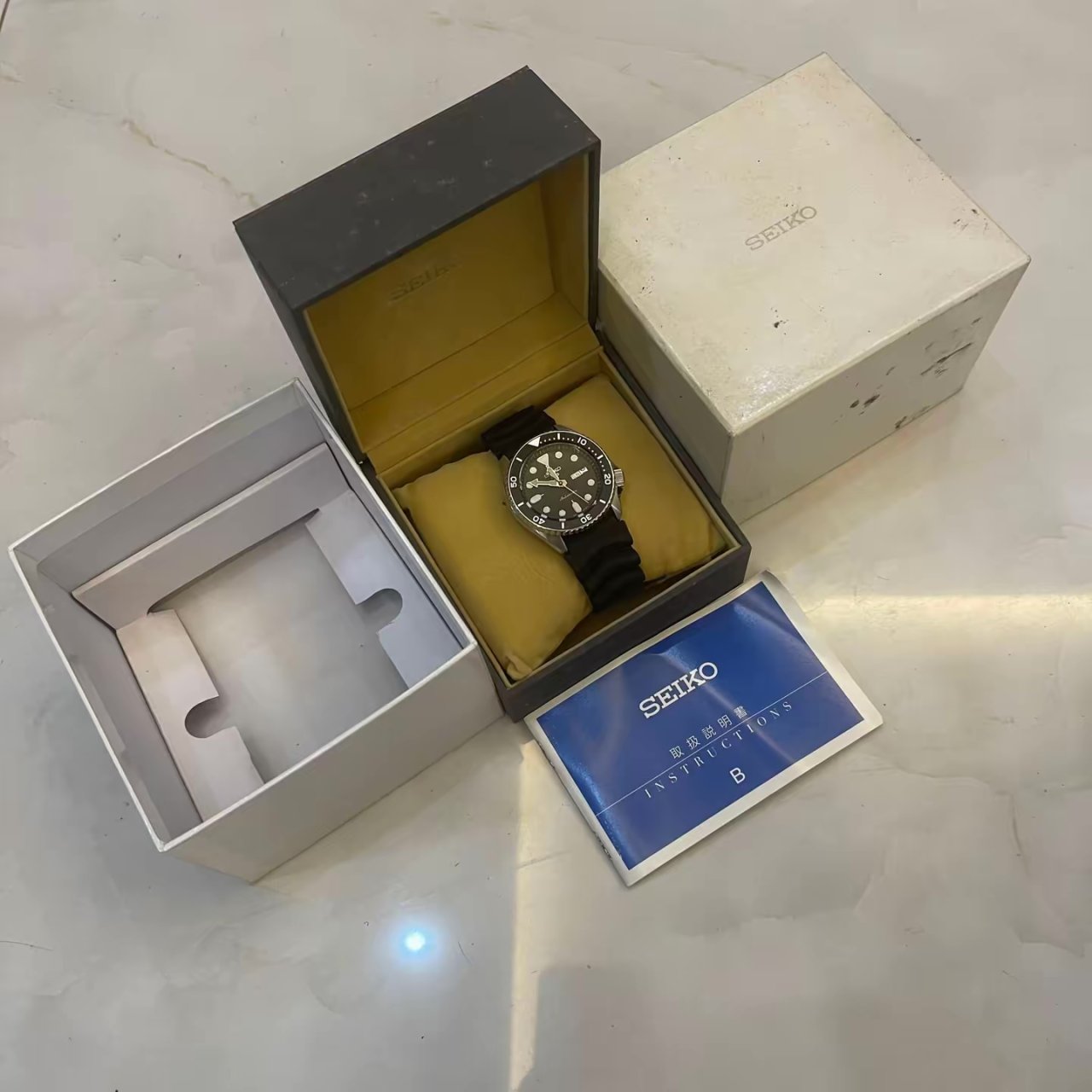- Máy: Cơ Automatic 24j- Size 43 chưa núm - Kính dạng Sapphire - Dây khoá zin 🚰 Chống nước :100mét ⏰ Hình thức 98% - ( mới hơn 10 triệu) 💰- 3tr999 - ( FULL hộp )