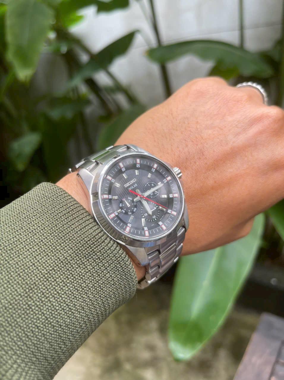 - Máy: pin Solar - Size 42 chưa núm- Kính thường - Dây Khoá zin🚰 Chống nước: 100 M ⏰ Hình thức 96% - ( mới 8triêu ) 💰- 1tr650 k - (Full hộp )