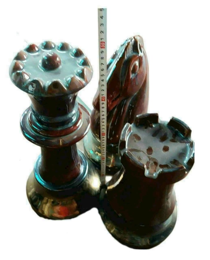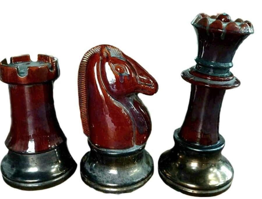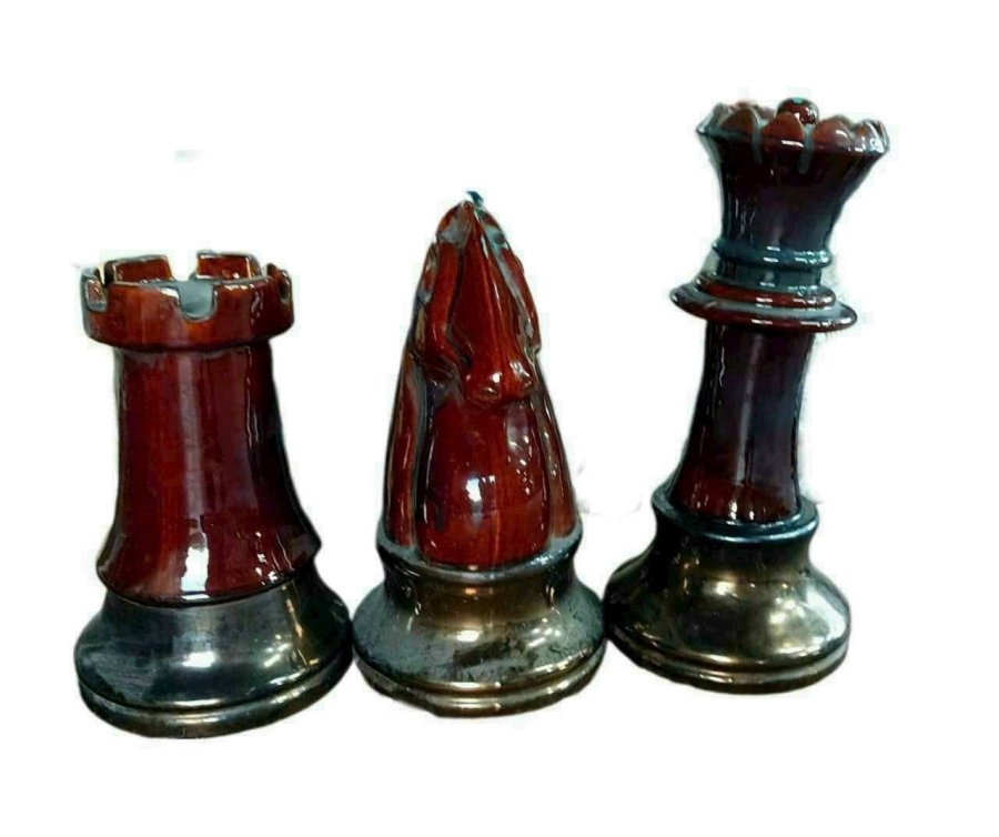Set 3 quân cờ Xe-Mã- Hậu trong bộ Cờ Vua khổng lồ bằng ốm Sông Bé Bình Dương cũ.Cao 33cm_39cm_45cm.