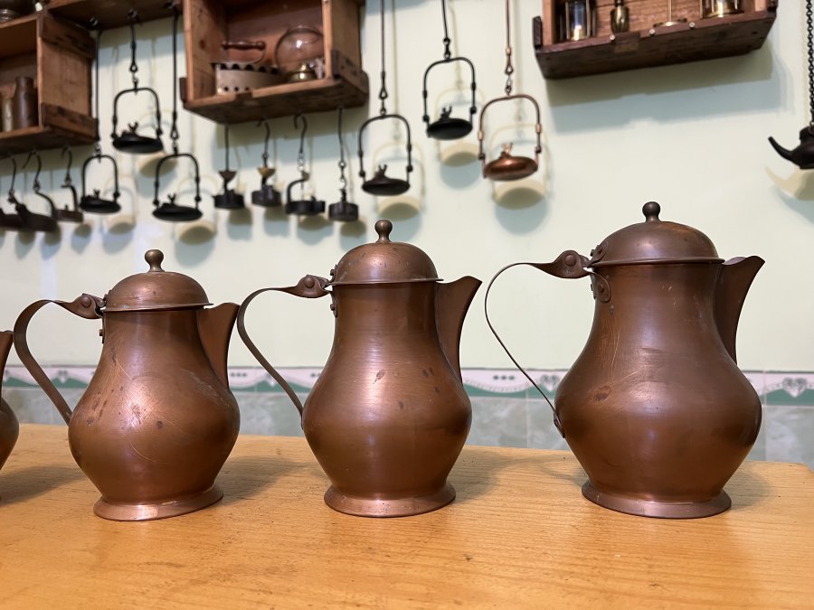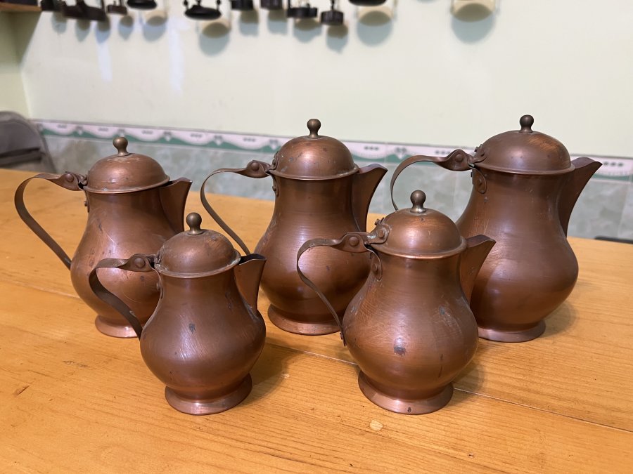 Em giao lưu 5 ấm con vịt đồng đỏ xưa,