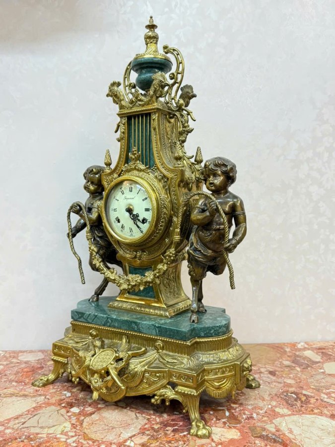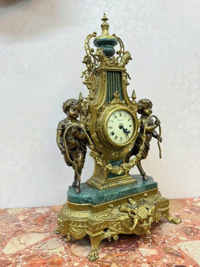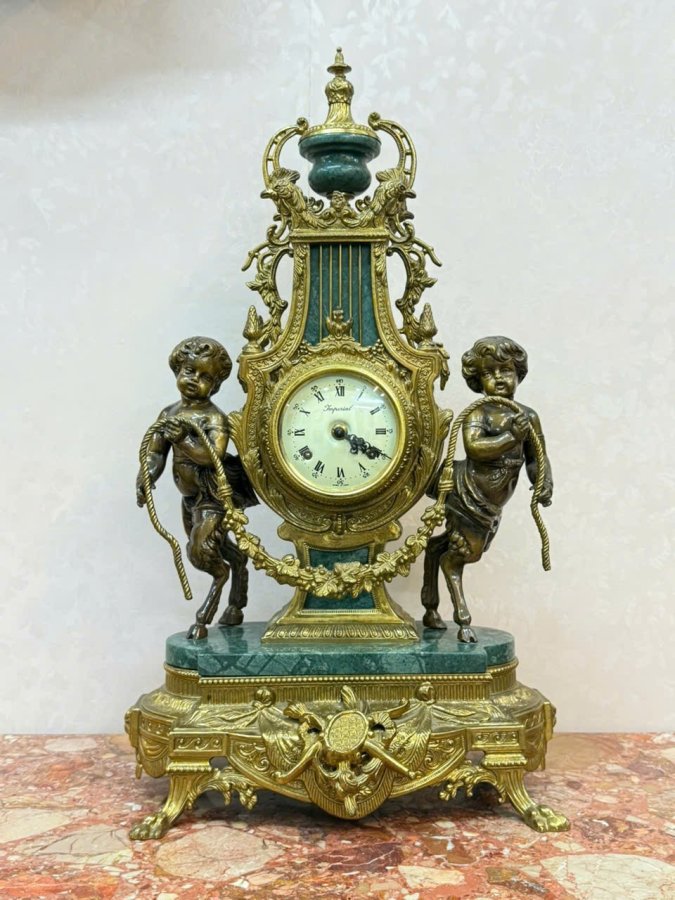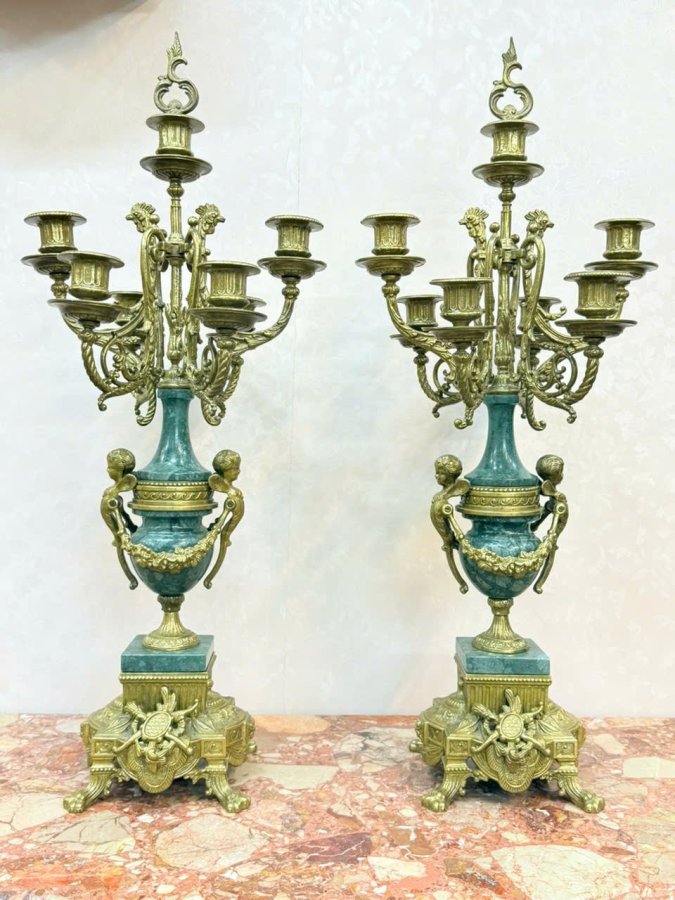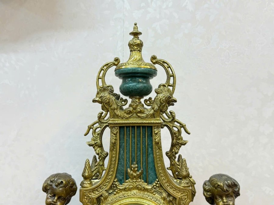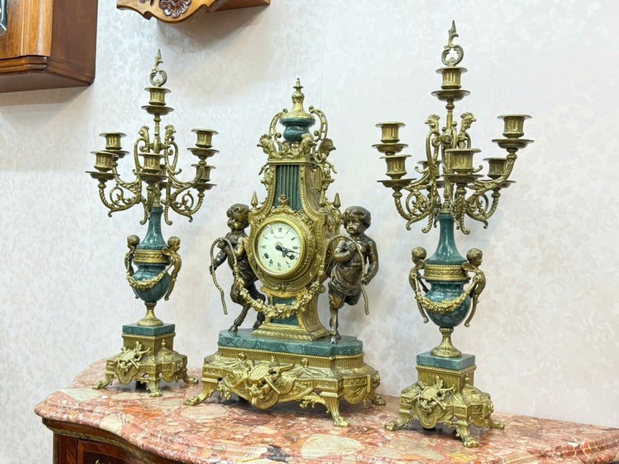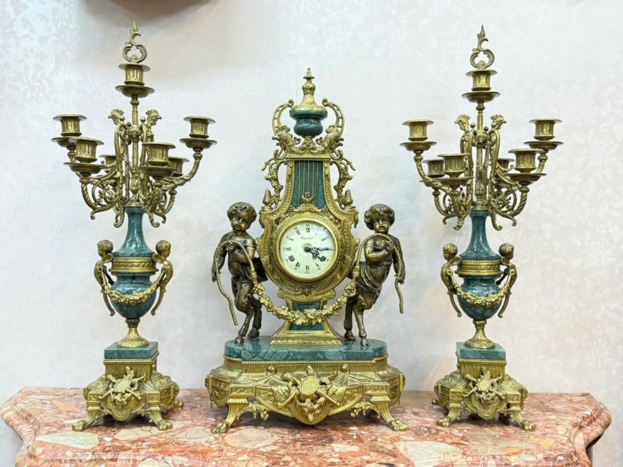 Bộ Đồng Hồ & Chân Nến Imperial đá Cẩm thạch xanh - made in ITALY
