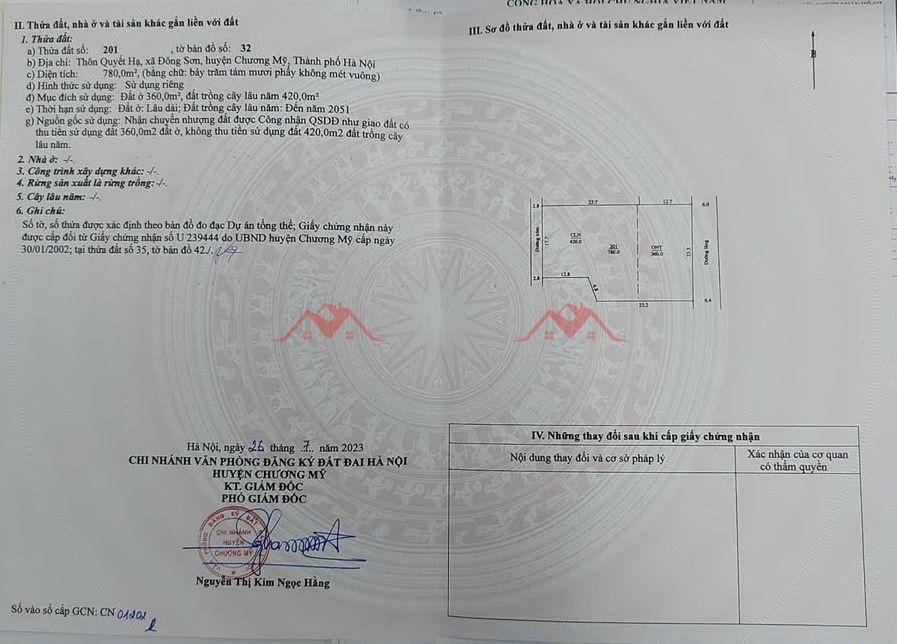 Bán Đất 2 Mặt Tiền 780m² (360m² Thổ Cư) – Ô Tô Tránh – Gần Quốc lộ 6 – Đông Sơn, Chương Mỹ, Hà Nội