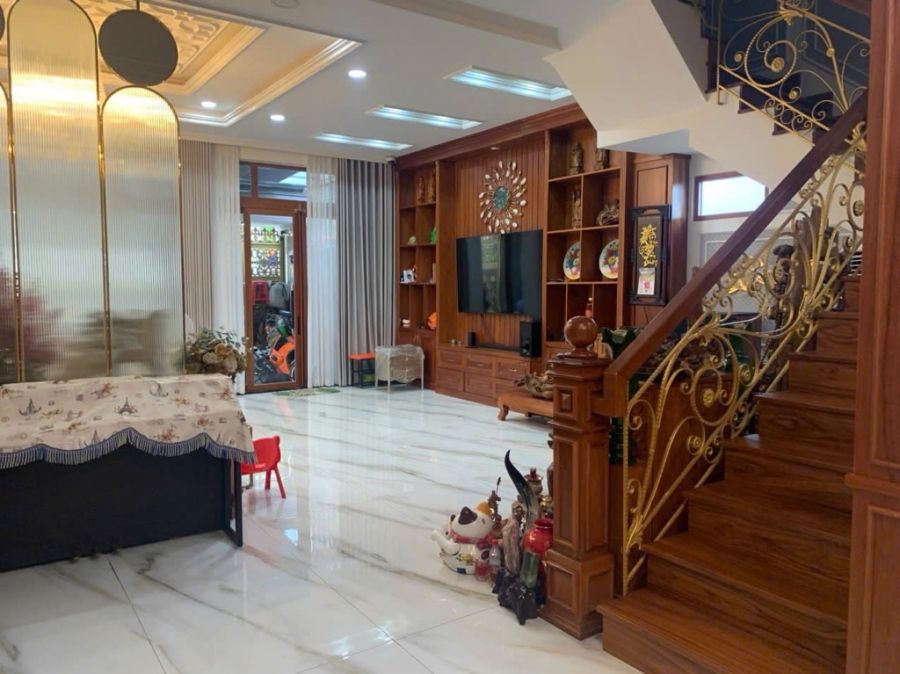 Hiện trạng: 1 trệt, 2 lầu, 1 Phòng khách, 5 phòng ngủ, 1 Phòng ngủ Master, phòng tắm có xông hơi khô, 5WC, phòng bếp, phòng thờ,ban công