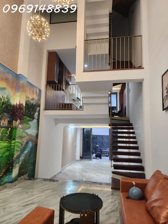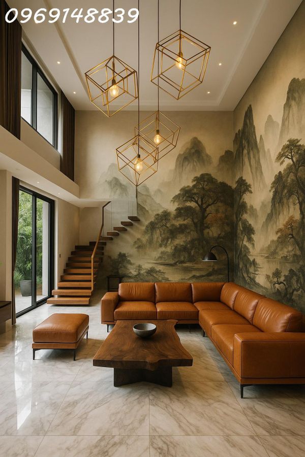 ✅ Thiết kế sang trọng, hiện đại: Trần cao, cầu thang lửng, đèn chùm tinh tế, không gian sống đẳng cấp như resort tại gia