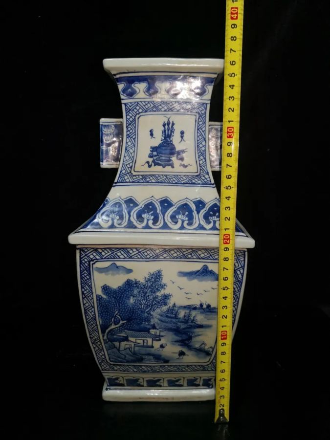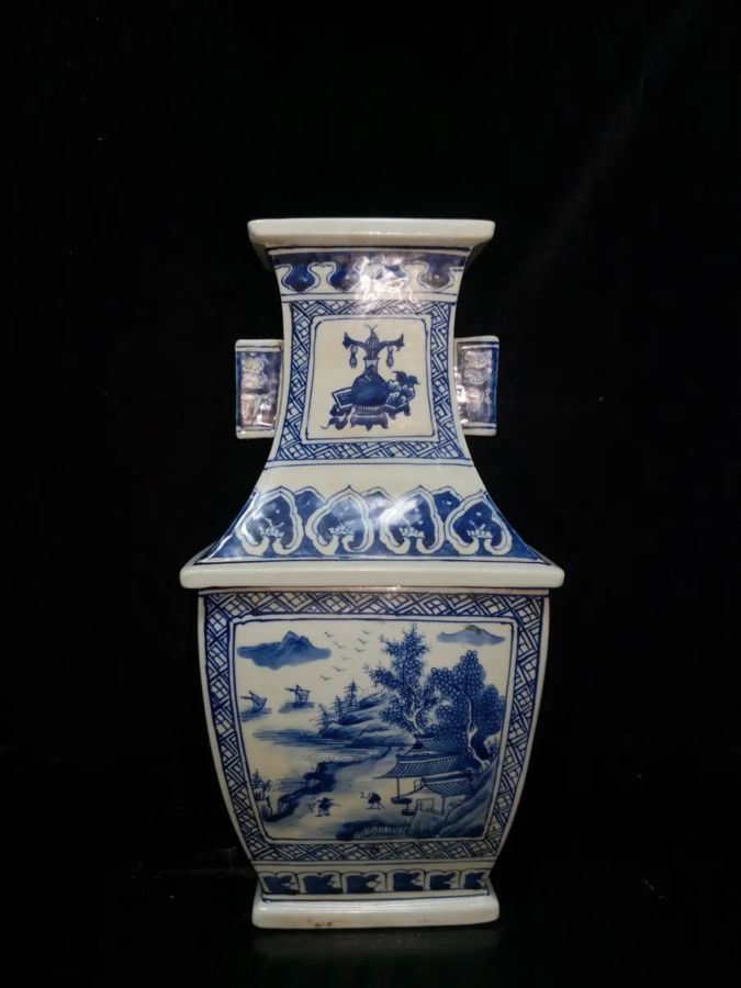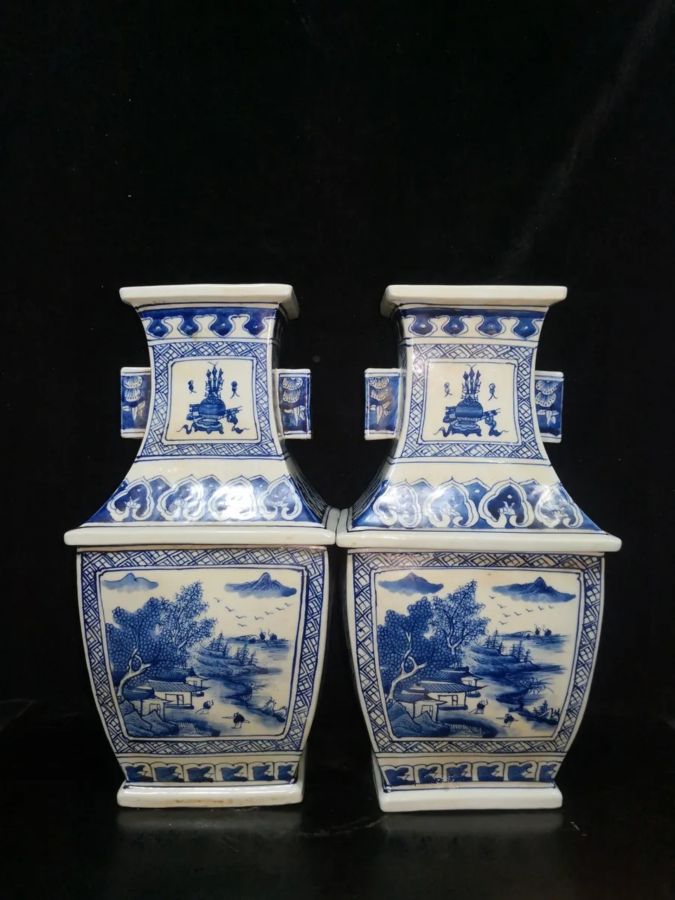 Siêu phẩm gốm Trung Hoa Giang Tây(江西) - đôi bình vuông, hai quai đeo độc đáo
