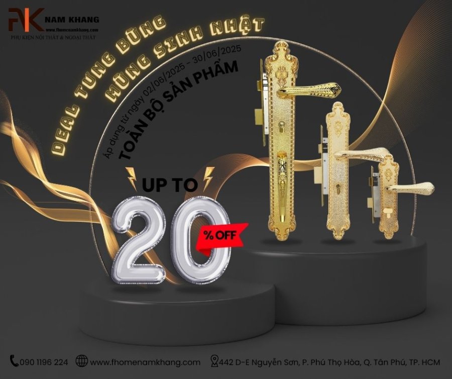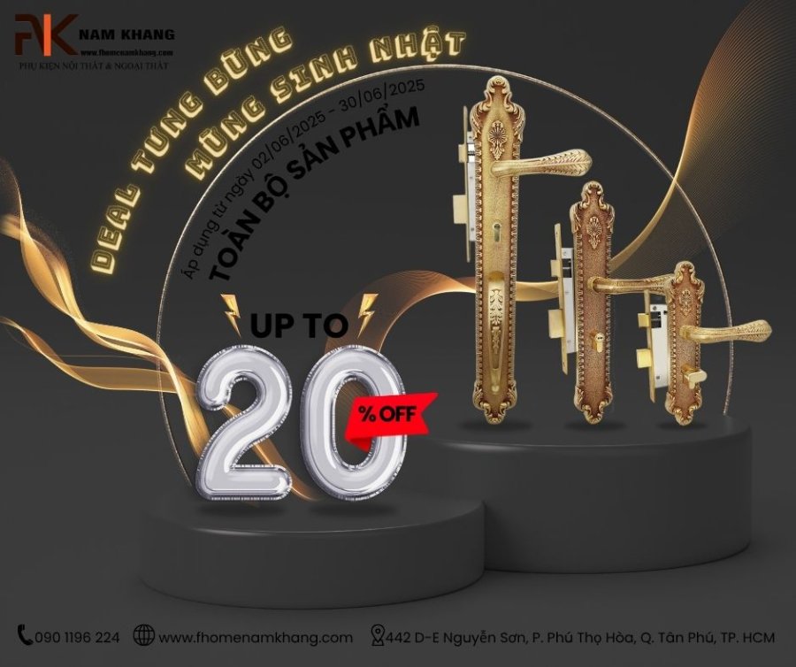 Từ 02/06/2025 đến hết 30/06/2025, Nam Khang ưu đãi 20% cho toàn bộ sản phẩm hàng có sẵn như lời tri ân chân thành đến Quý khách đã đồng hành cùng chúng tôi trong suốt hành trình phát triển.