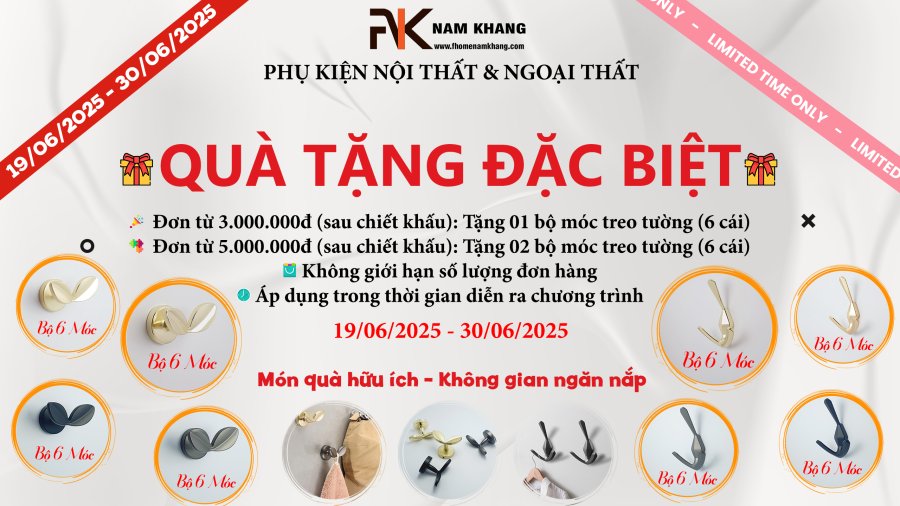 Đơn hàng từ 3.000.000đ ( giá trị sau chiết khấu): tặng 01 bộ móc treo tường ( 6 cái )
