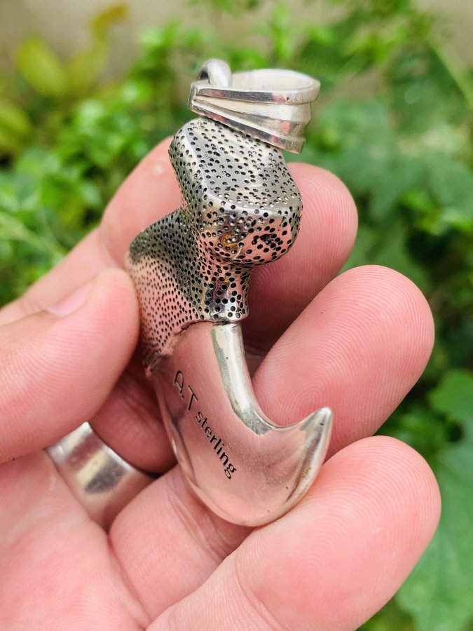SIU PHẨM ĐỘC LẠ HIẾM THẤY Ở VN.. 🐯🐯🐯🐯🐯🐯 Mặt bạc ngoại làm theo kiểu m.ó.n.g. c.ợ.p.. Kt to 4 x 7 cm tổng thể. Nặng 2 lượng 6. Mặt web nhỏ xíu mà hơn 13 củ. Tú thì dẻ bèo.