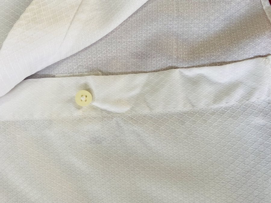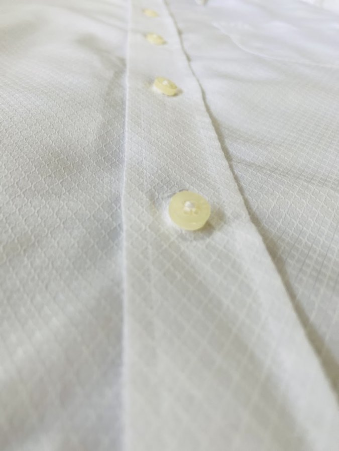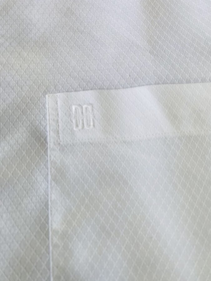 Đây là một chiếc áo sơ mi nam rất tinh tế. Họa tiết dệt chìm và logo thêu chìm giúp nó thoát khỏi sự nhàm chán của một chiếc áo sơ mi trắng thông thường, mang đậm tính "smart-casual" – vừa đủ lịch sự để mặc đi làm với quần âu, vừa đủ thoải mái để mặc đi chơi với quần khaki hoặc jeans.
