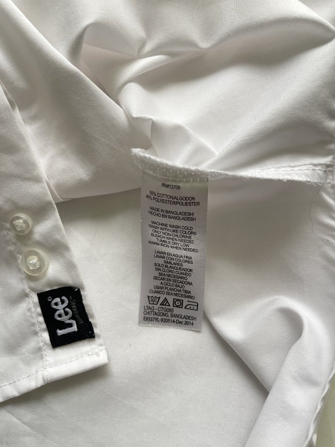 Sơ mi hiệu Lee Uniforms chính hãng Size L Vai 48 Ngực 58 Dài 76 (70kg đến 80kg mặc vừa)Made in Bangladesh Tình trạng mới 98%