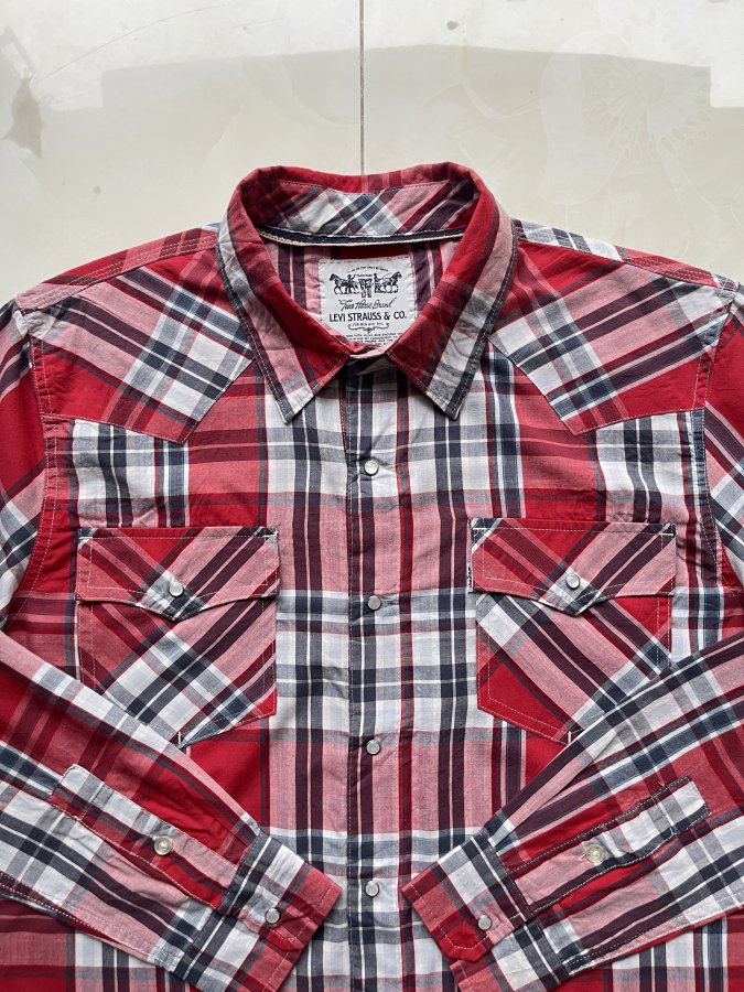 Sơ mi hiệu Levis Strauss&Co chính hãng Size L Vai 47 Ngực 57 Dài 76 (68kg đến 78kg mặc vừa)Made in Bangladesh Tình trạng mới 99%