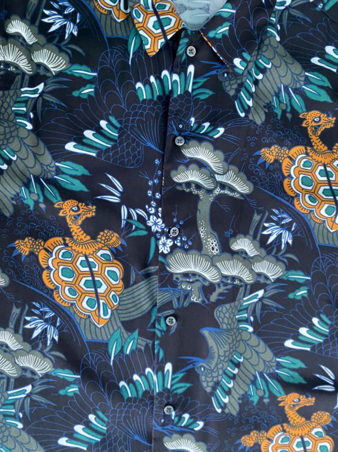 Hoạ tiết quy phụng, chất vải LYOCELL sinh học, thoáng mát, dễ chịu.