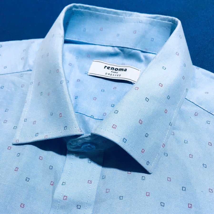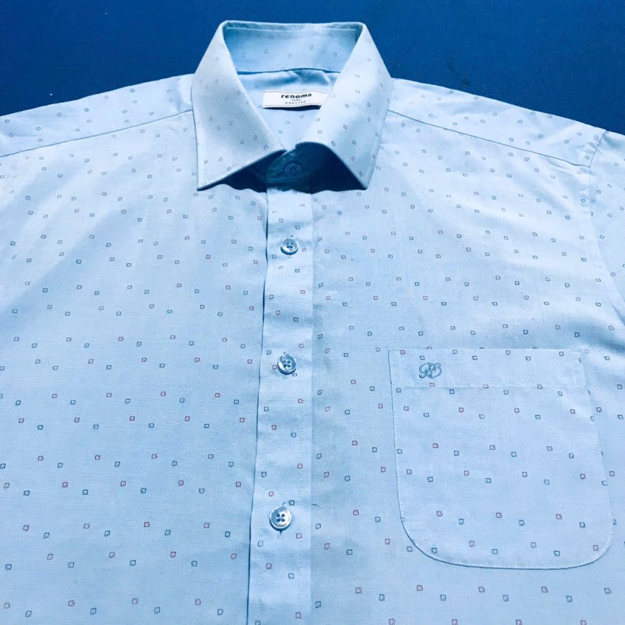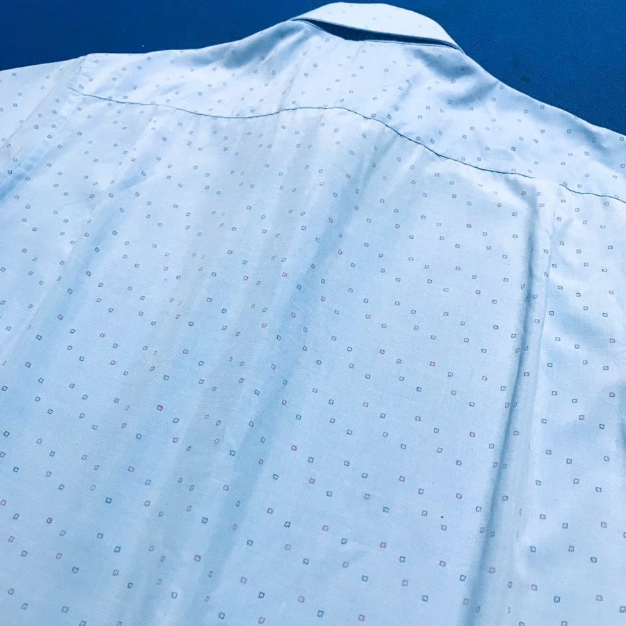 Áo màu xanh thiên thanh phối họa tiết bi