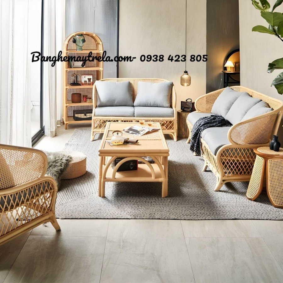 Set sofa mây tự nhiên kiểu dáng hiện đại cho phòng khách