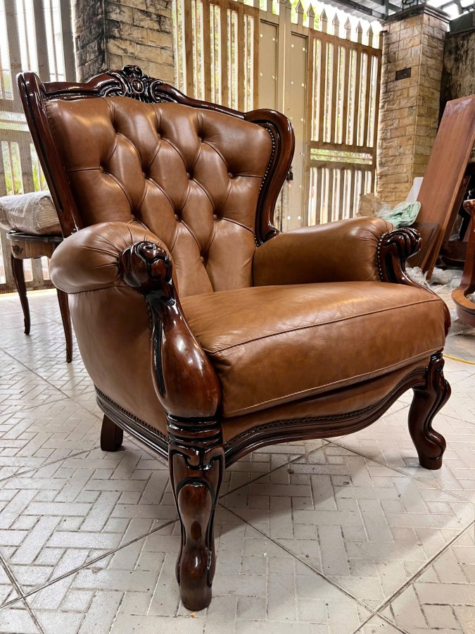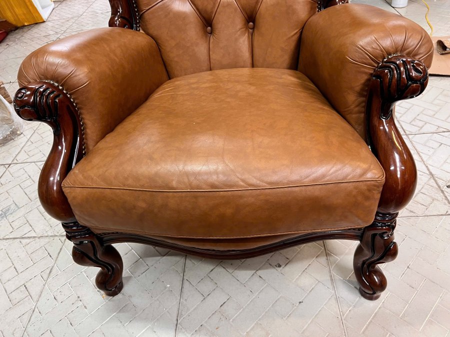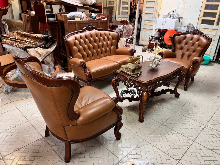 Một bộ sofa cổ của Pháp hàng sâu tuổi được bảo quản tốt nên vẫn còn cực kỳ đẹp gỗ sồi già đục chạm hoa văn và còn lớp bóng phối với da bò thật độ mới còn rất cao có thể dùng luôn giá mềm Call:0333534345