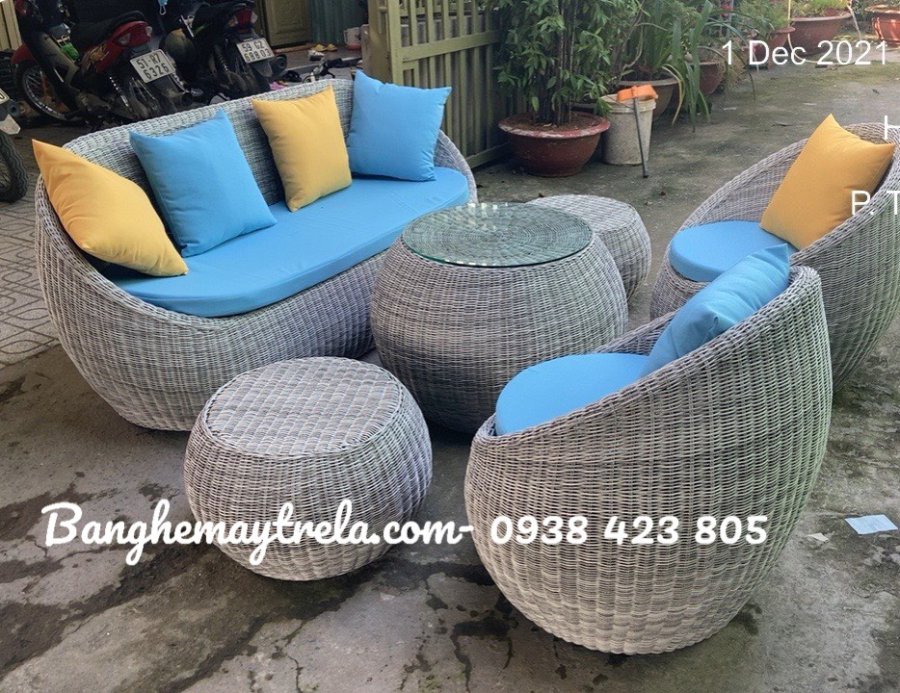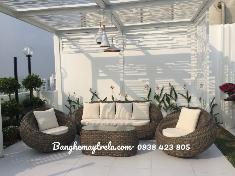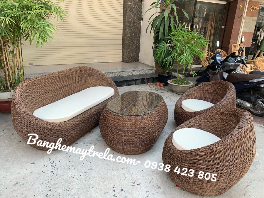 Sofa sò nhựa giả mây không chỉ đẹp mắt mà còn chịu nắng mưa tốt, dễ vệ sinh và giữ dáng lâu dài.