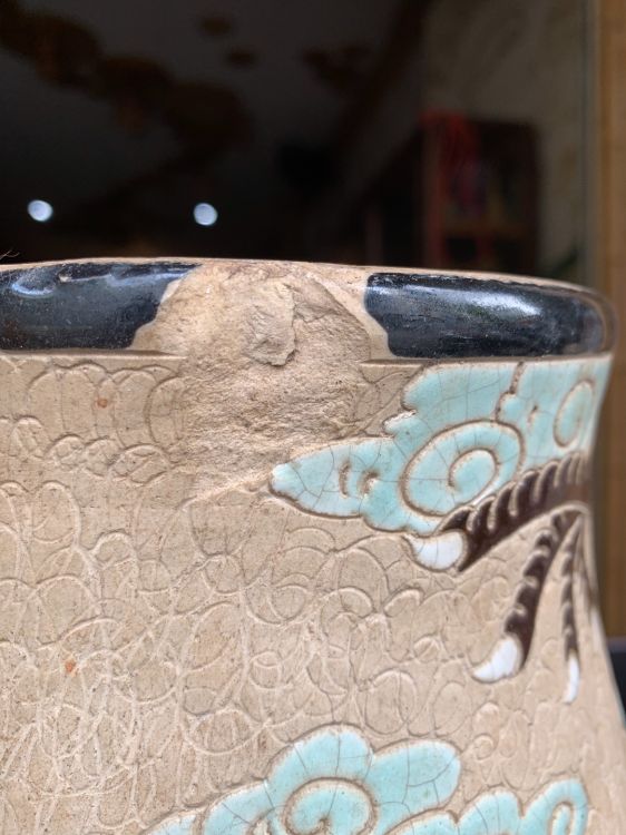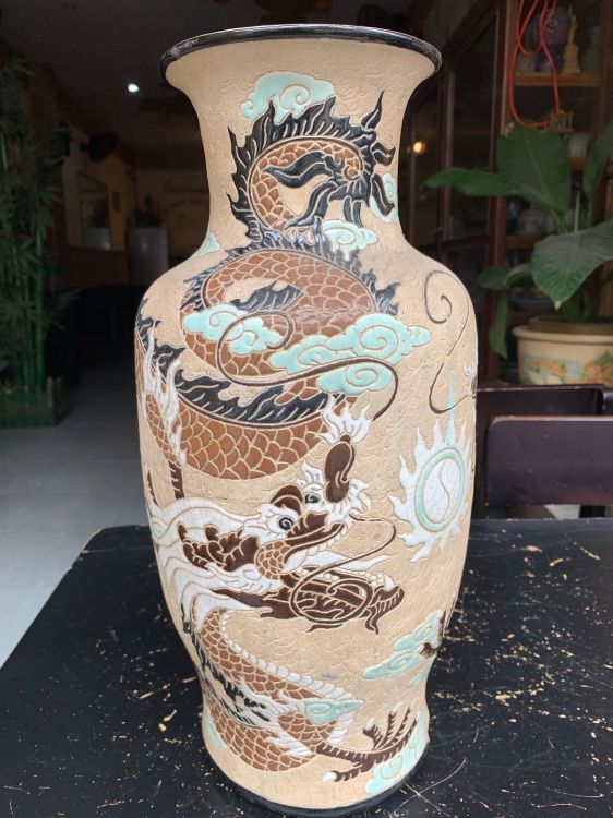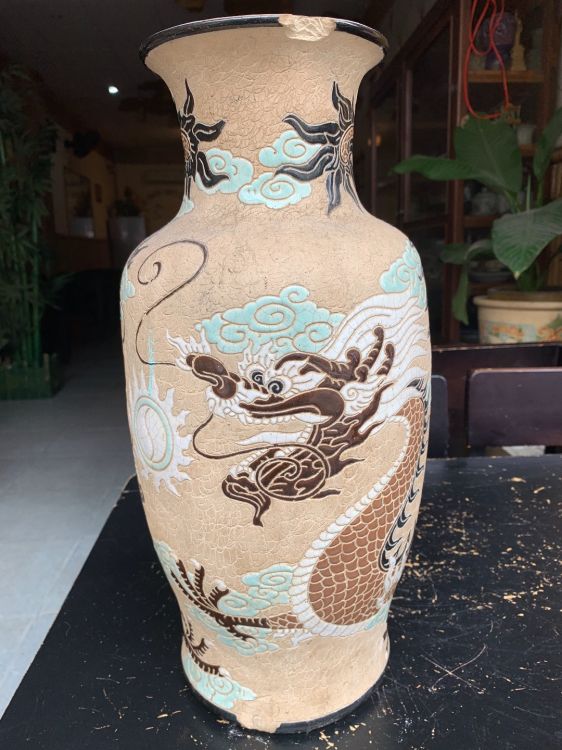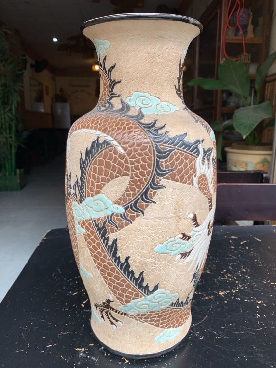 Song long mẽ trôn-vành miệng Nẻ lò có dán keo đáy. Cao 41cm, giá decor.
