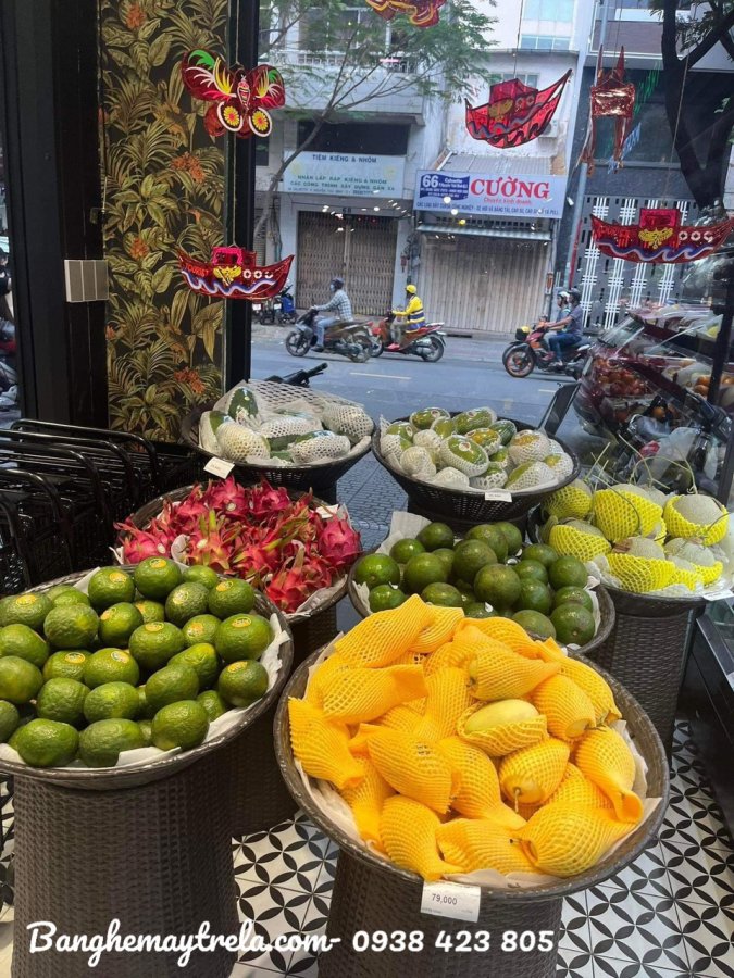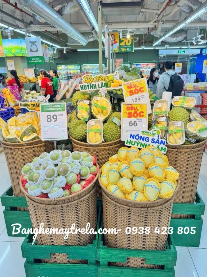 Sọt mây nhựa trưng bày trái cây tại siêu thị không chỉ là cách hiệu quả để giữ trái cây tươi ngon mà còn làm đẹp không gian bán hàng.