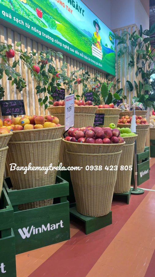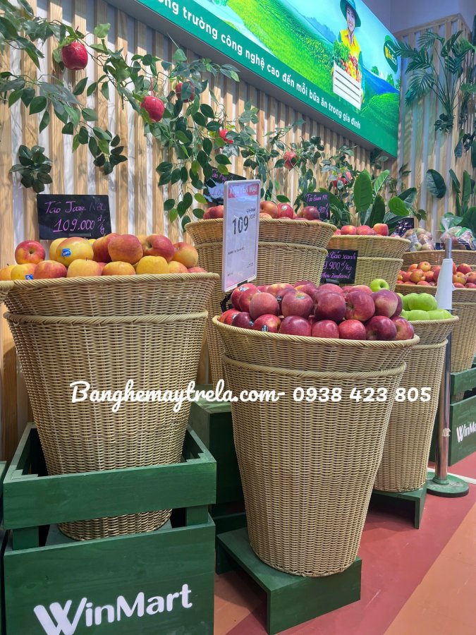 Sọt trưng bày chất lượng cao: Bền, đẹp, phù hợp với tiêu chuẩn siêu thị WinMart.