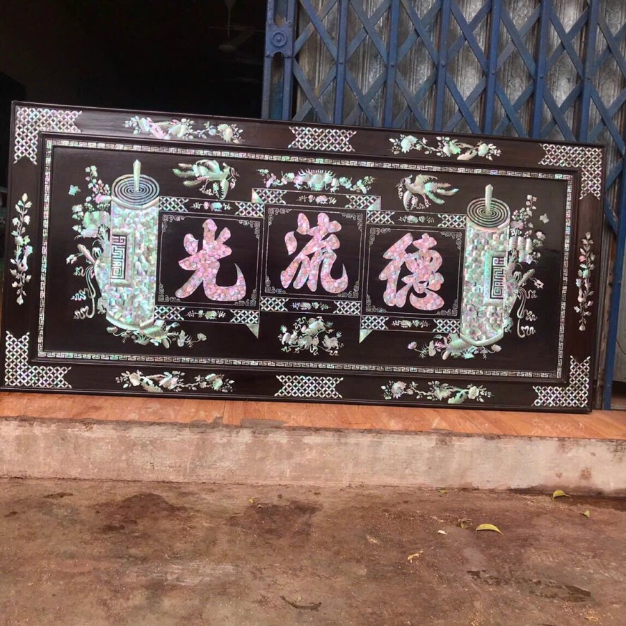 Tranh đại tự : Đức -lưu -quang gỗ gụ khảm ốc Singapore kt 127/60