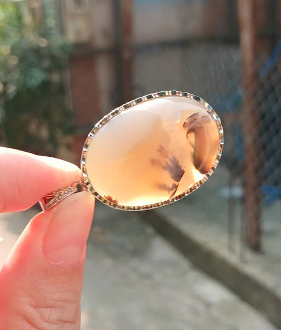 Mặt dây chuyền Mã não, khung bạc dày dặn, Đẹp như 1 bức tranh, giá nước ngoài khá cao